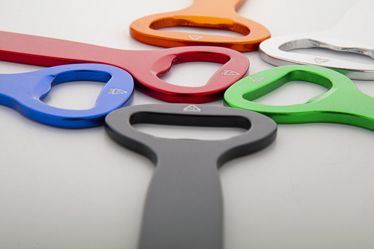 Újrahasznosított alumínium üvegnyitó. Eleje