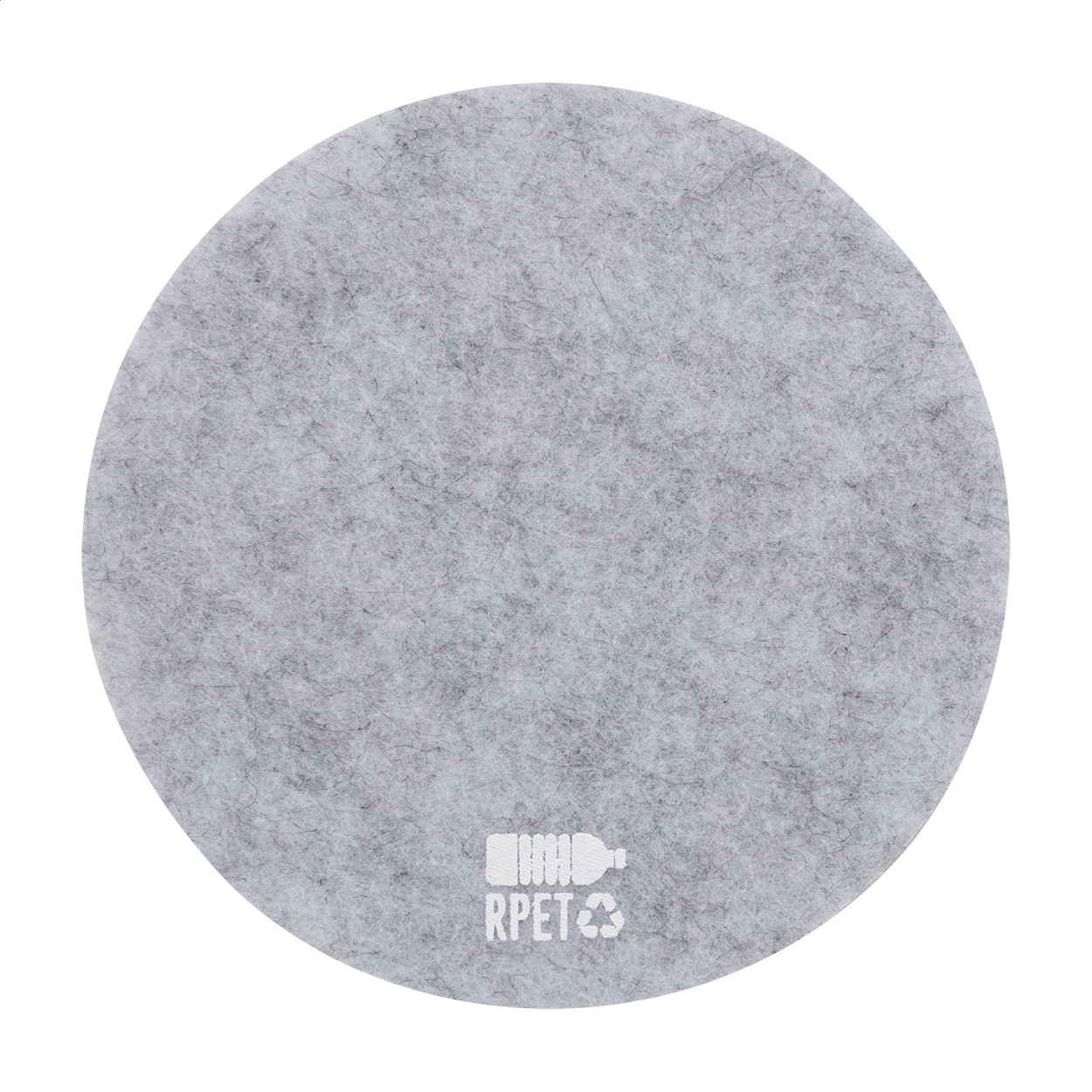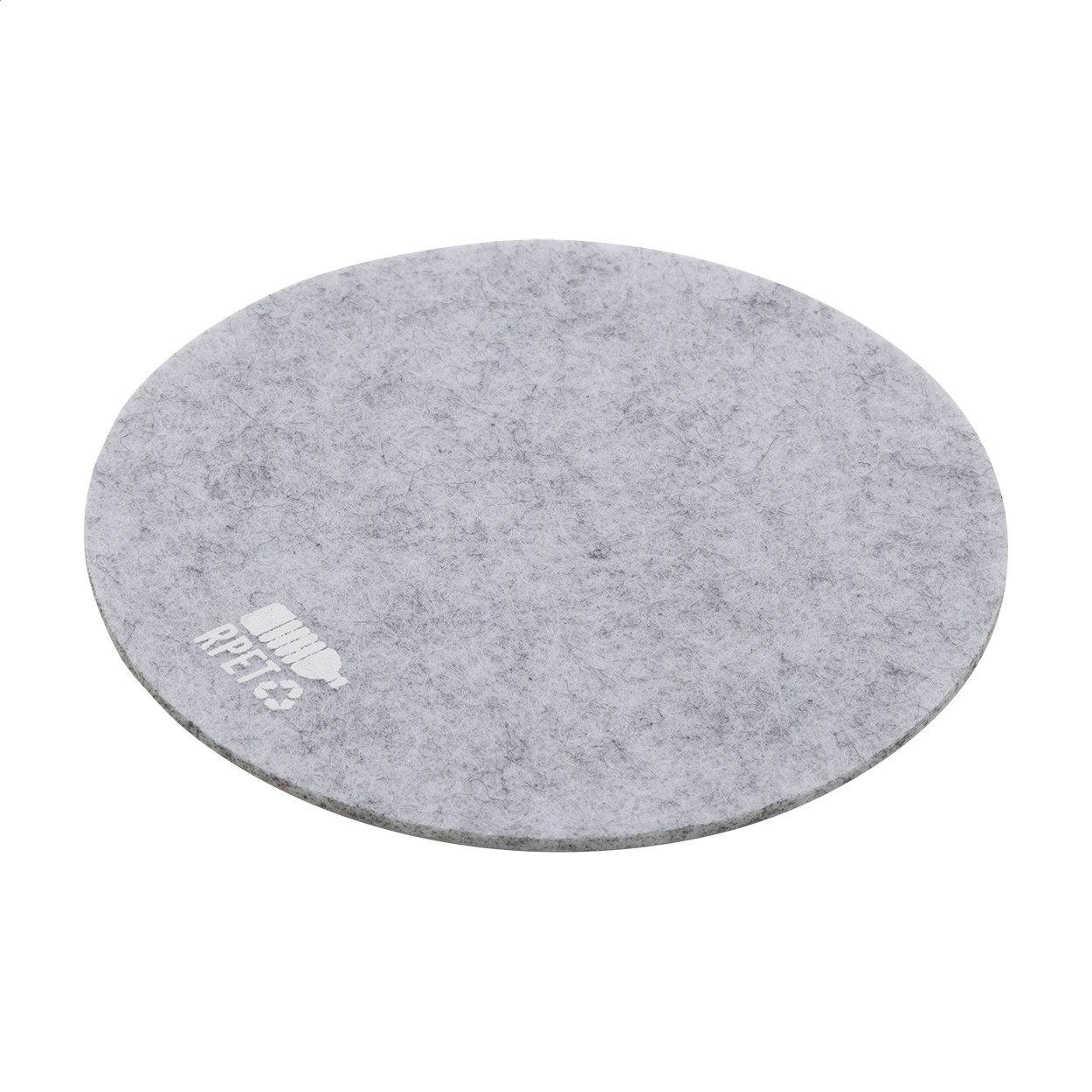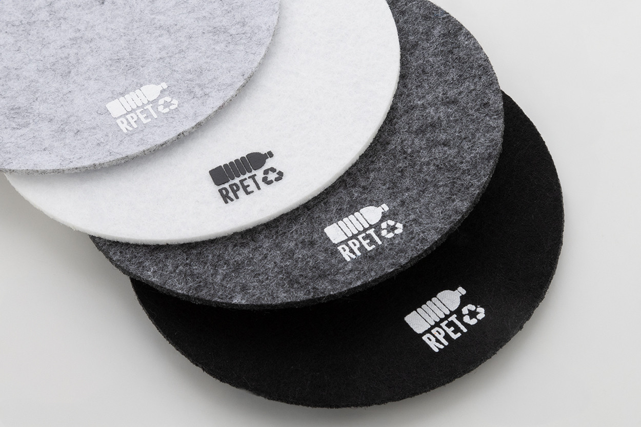 Kerek RPET filc poháralátét. Megkülönböztető RPET jelzéssel. Teteje