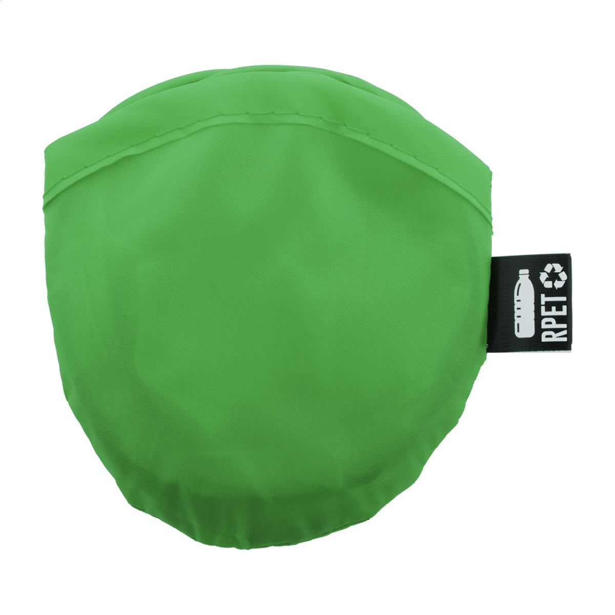 Összehajtható RPET poliészter frizbi tokkal. Megkülönböztető RPET címkével. Tok