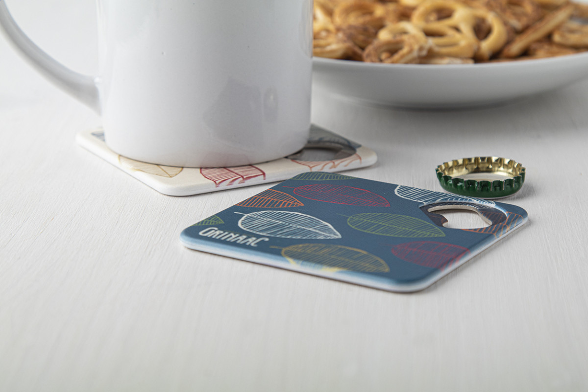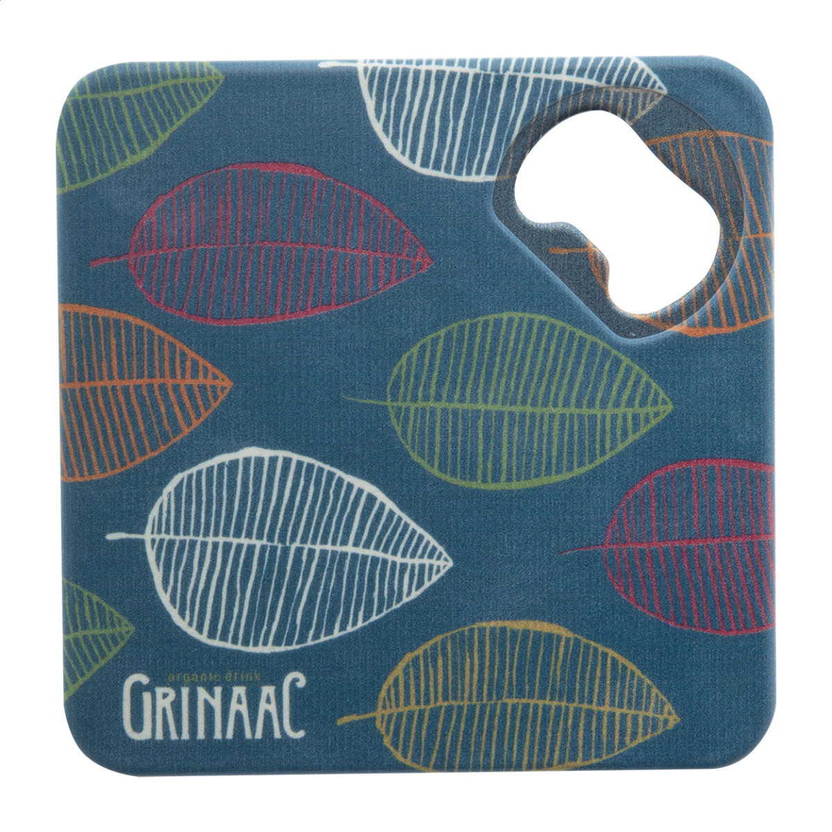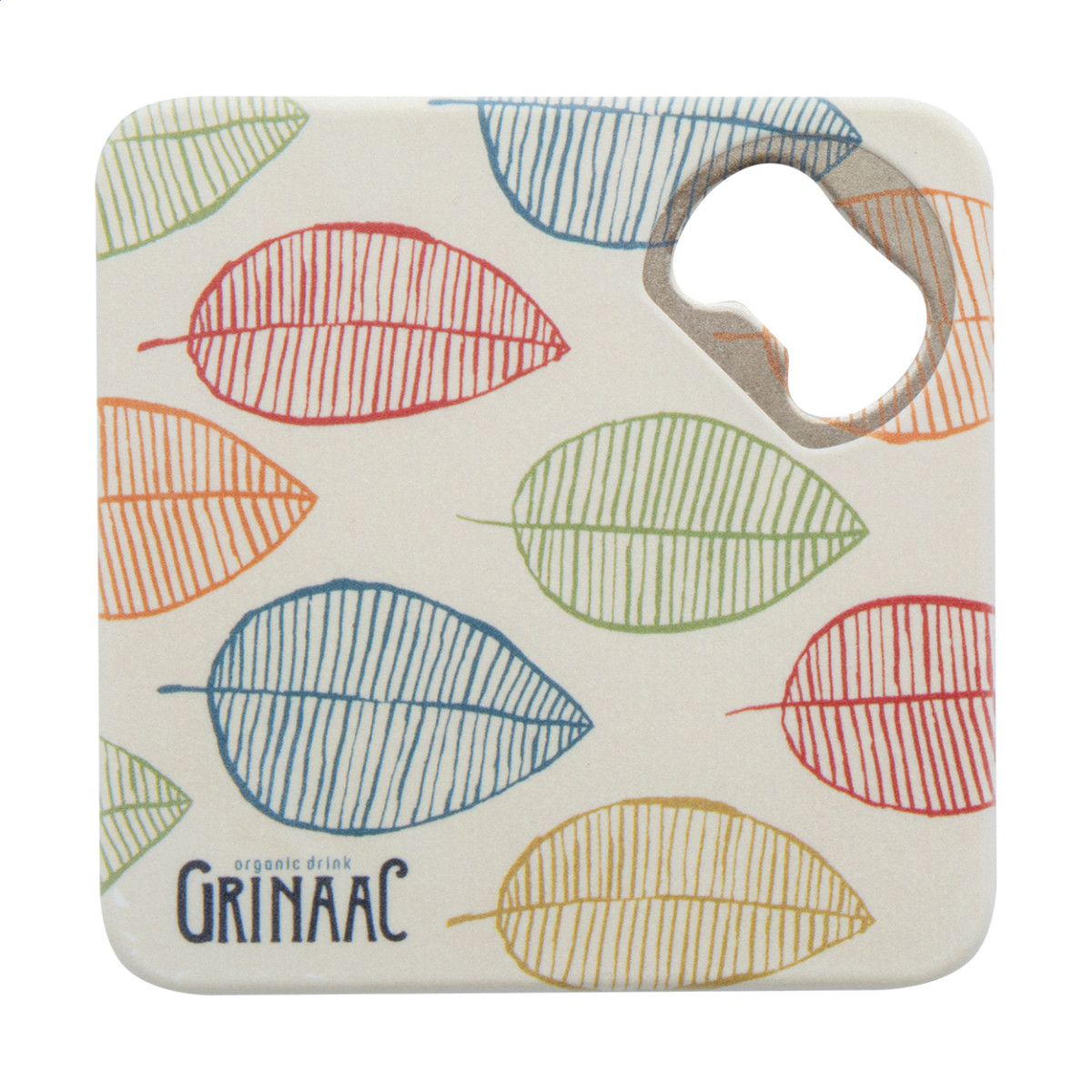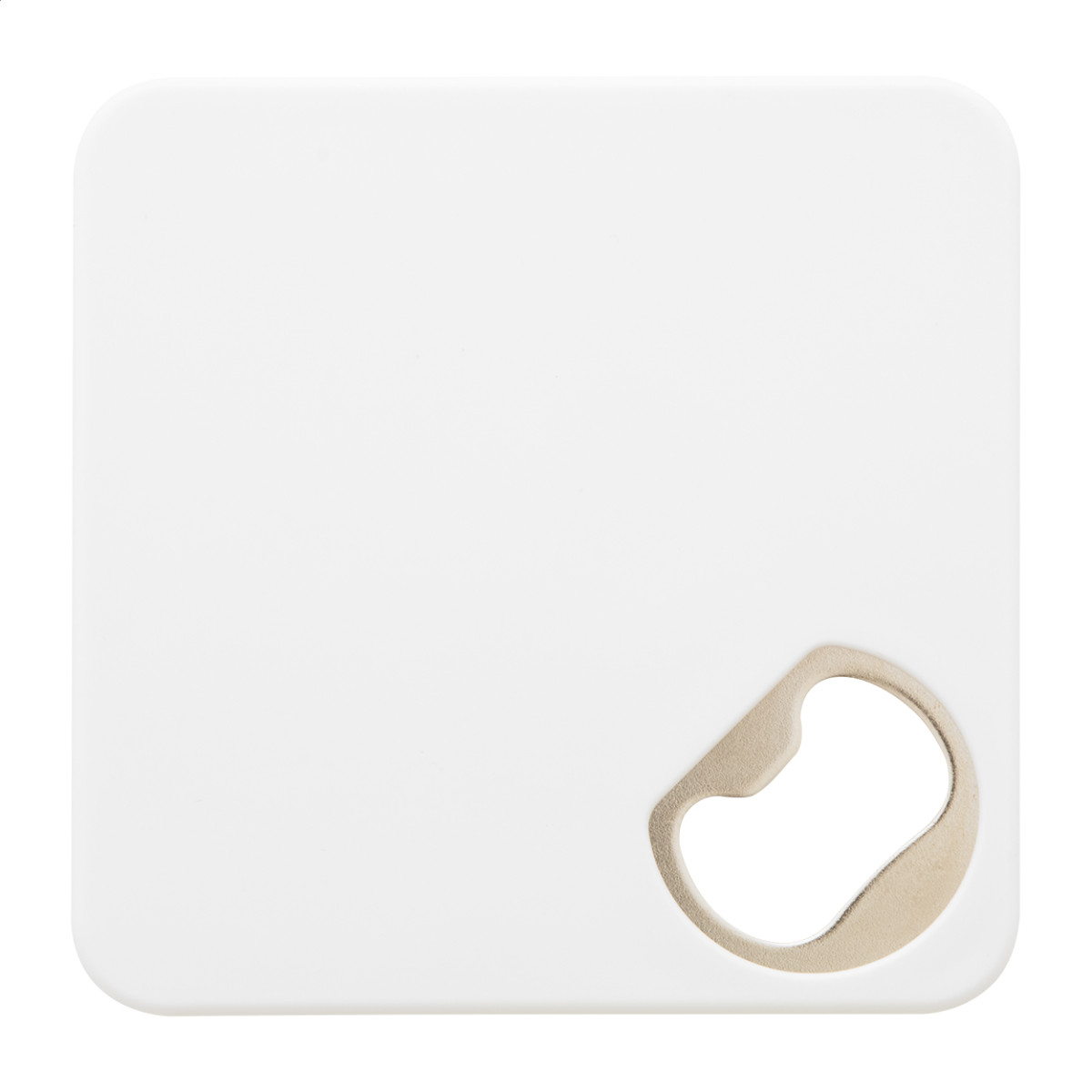 Műanyag poháralátét, sörnyitóval és csúszásmentes aljjal. Eleje