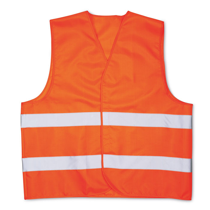 Láthatósági mellény 100% kötött poliészterből, Class2 osztályú fényvisszaverő csíkkal. EN17353.