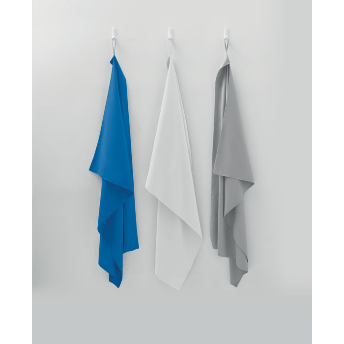 Mikroszálas törölköző 90% poliészterből és 10% poliamidból, rugalmas pánttal. Könnyű és gyorsan szárad. Méret: 100x150 cm.