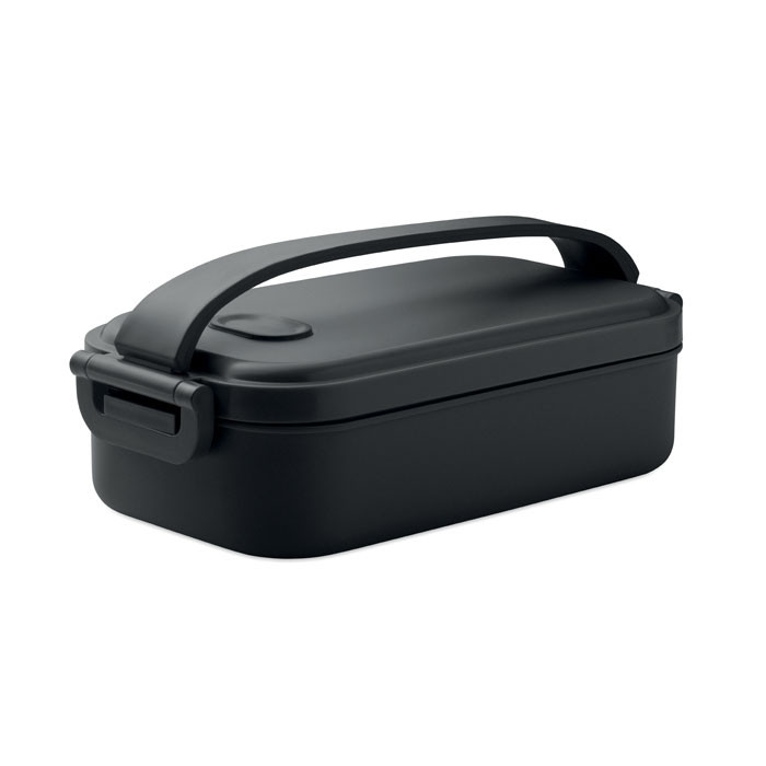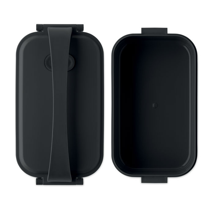 PP uzsonnás doboz, oldalsó csatokkal és légmentesen záródó fedéllel. Űrtartalom: 800 ml.