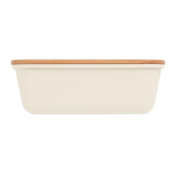 Ebéd- vagy uzsonnásdoboz PP-ből, bambuszfedéllel. A bambusz természetes anyag, színében, mintázatában és méretében esetenként eltérő lehet.