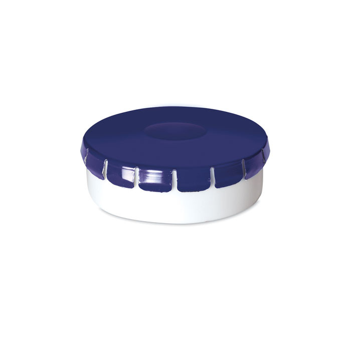 12 grammos cukormentes mentolos cukorka műanyag dobozban, bádogfedéllel és műanyag aljjal. Egyszerűen, nyomásra nyílik.