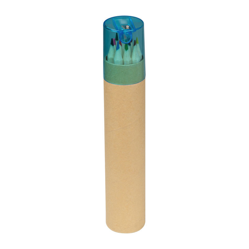 12 db-os színes ceruza szett henger alakú karton tokban, ceruza hegyezővel.