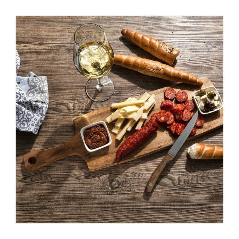 A praktikus akácfából készült tálalódeszka és két kerámia tál szószokhoz remek kiegészítője lesz minden konyhának. Tálalhatóak rajta különféle sajtok, sonkák és kenyerek a deszkán, szósszal vagy körettel kis tálkákban, az élvezetes vacsorákhoz. Vanilla Season díszdobozba csomagolva.