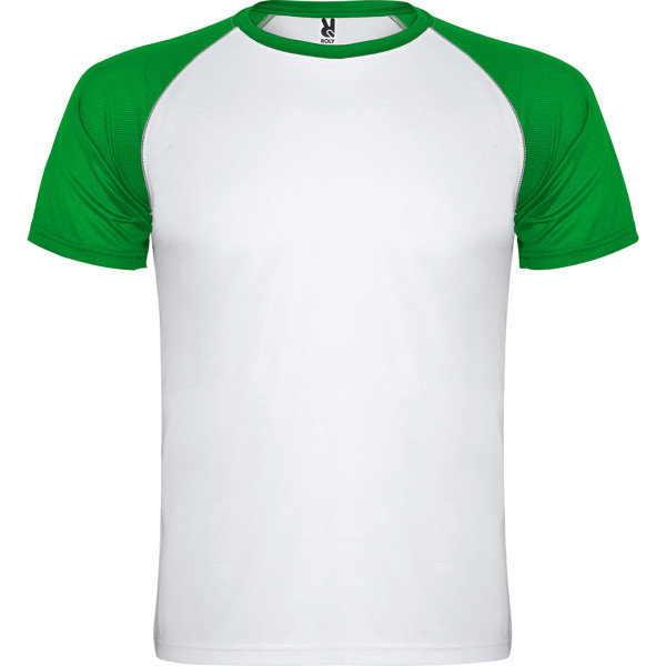 Sportos póló, kontrasztos rövid raglán ujjakkal. Kontrasztos kerek nyak és belül megerősítő varrásfedő.