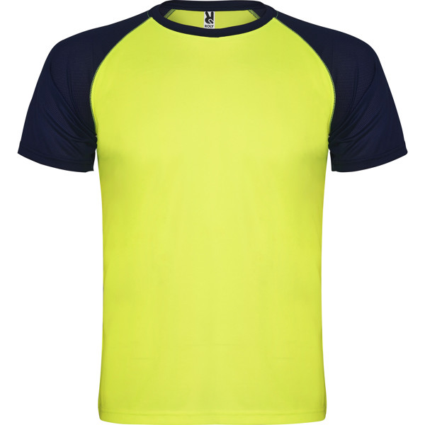 Sportos póló, kontrasztos rövid raglán ujjakkal. Kontrasztos kerek nyak és belül megerősítő varrásfedő.