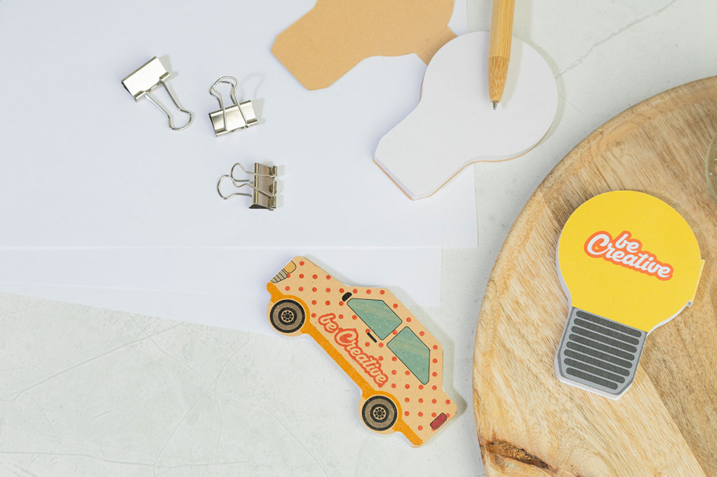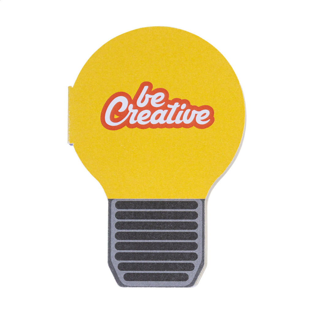 Egyedi gyártású, villanykörte alakú öntapadós jegyzettömb papír borítással. 50 újrahasznosított papírból készült öntapadós jegyzetlapot tartalmaz. Az ár tartalmazza a full-colour nyomtatott külső borítót. Minimális rendelési mennyiség: 100 db. |