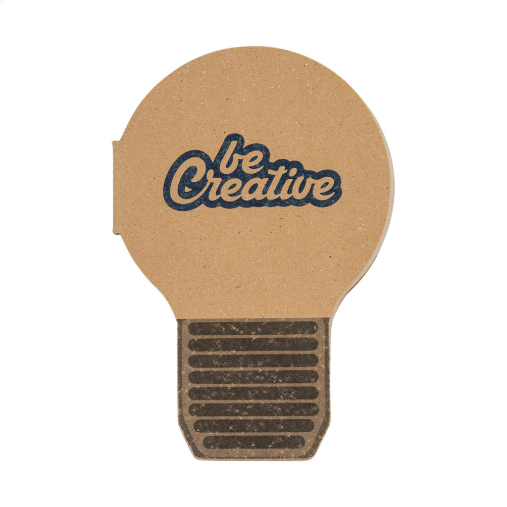 Egyedi gyártású, villanykörte alakú öntapadós jegyzettömb újrahasznosított kraft papír borítással. 50 újrahasznosított papírból készült öntapadós jegyzetlapot tartalmaz. Az ár tartalmazza a full-colour nyomtatott külső borítót. Minimális rendelési mennyiség: 100 db. |