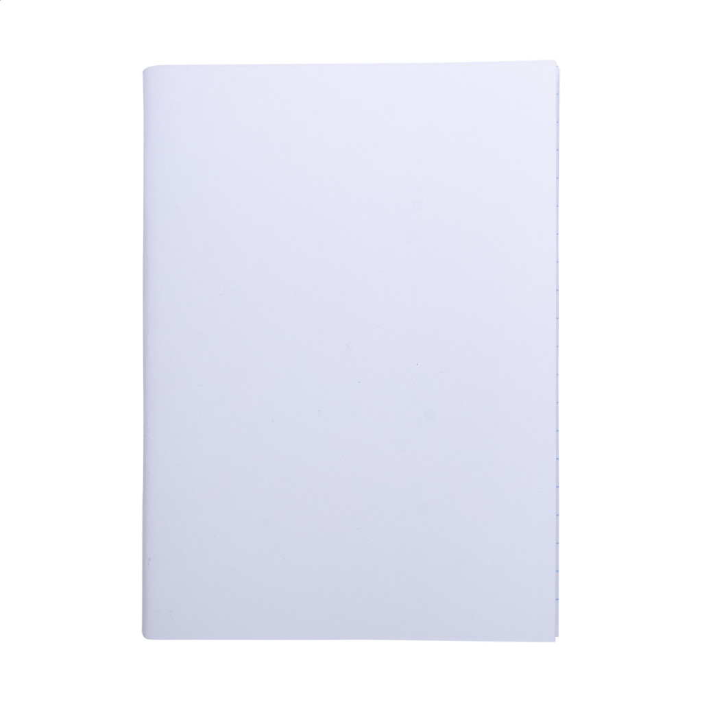 Egyediesíthető, újrahasznosított papír borítású jegyzetfüzet 32 újrahasznosított sima lappal, A6 méretben. Az ár tartalmazza a full-colour nyomtatás költségét a termék külső felületén. Minimális rendelési mennyiség: 100 db. Külső borító