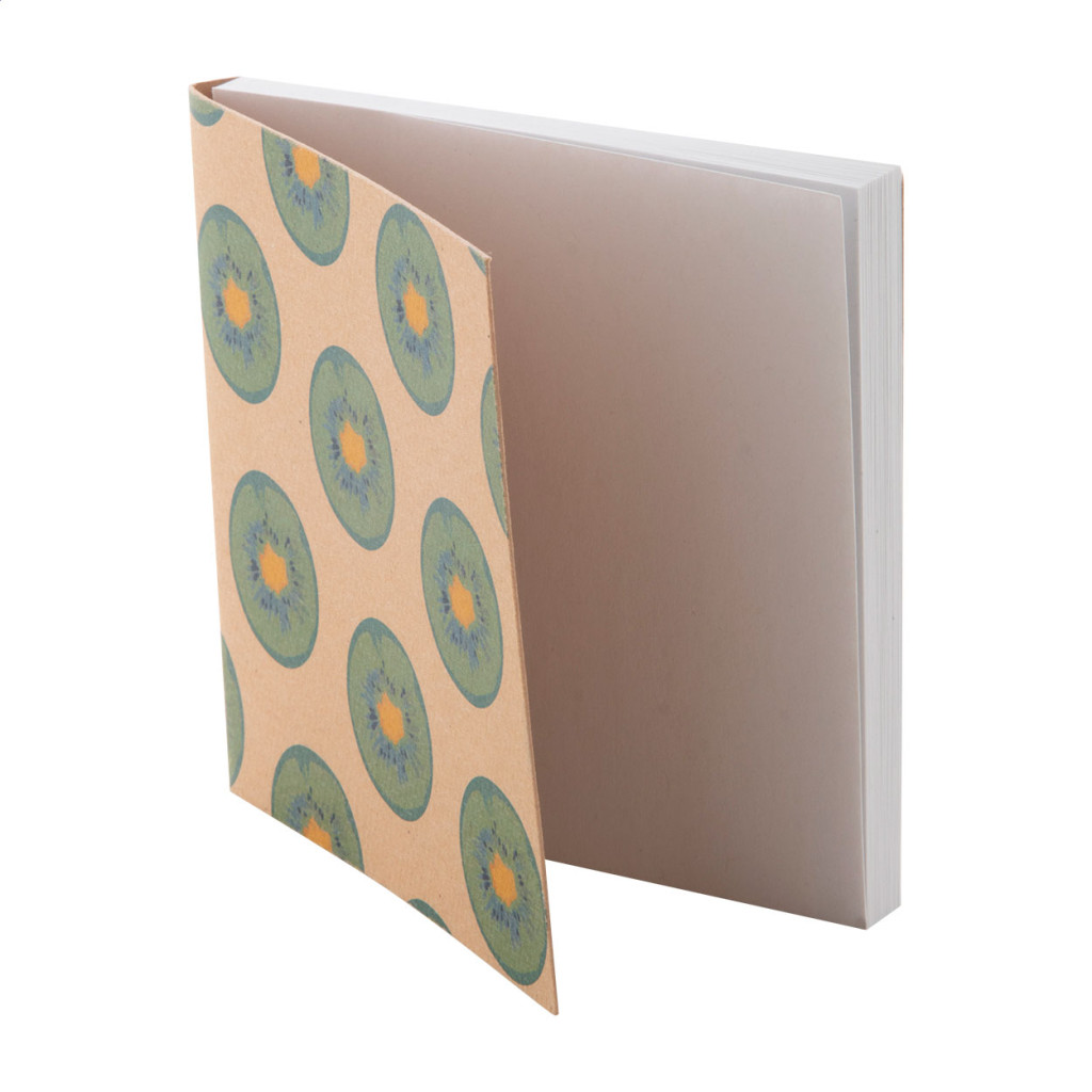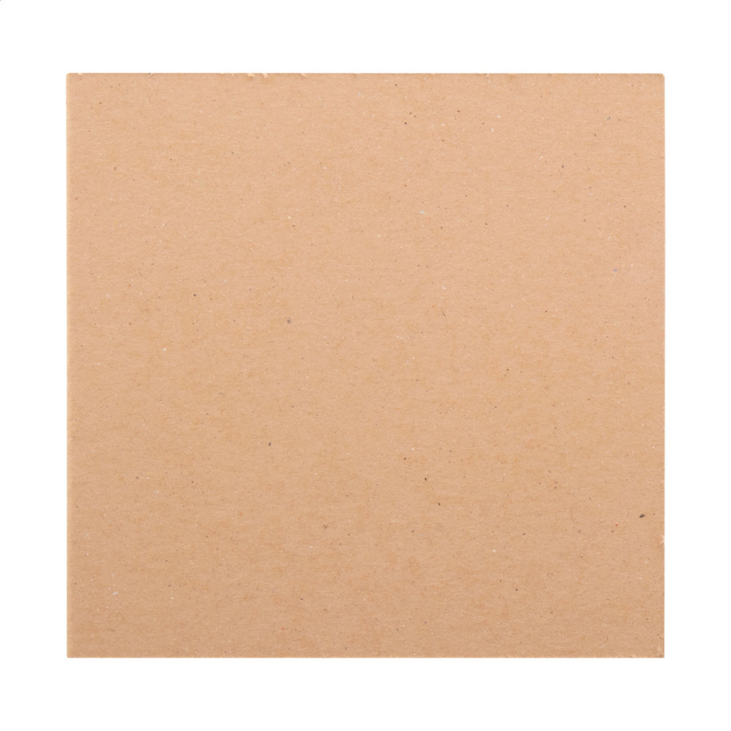 Egyediesíthető, újrahasznosított kraft papírral borított öntapadós jegyzettömb. Tartalmaz 50 újrahasznosított papír öntapadós jegyzetlapot (75×75 mm). Az ár tartalmazza a külső borító full-colour nyomtatását. Minimális rendelési mennyiség: 100 db. Külső borító