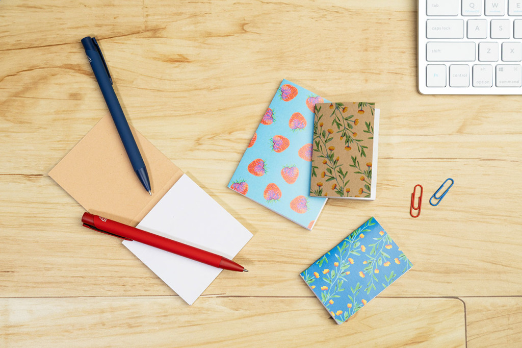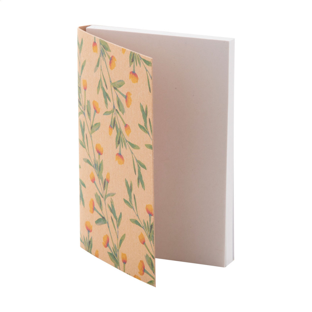 Egyediesíthető, újrahasznosított kraft papírral borított öntapadós jegyzettömb. Tartalmaz 50 újrahasznosított papír öntapadós jegyzetlapot (50×75 mm). Az ár tartalmazza a külső borító full-colour nyomtatását. Minimális rendelési mennyiség: 100 db. Külső borító