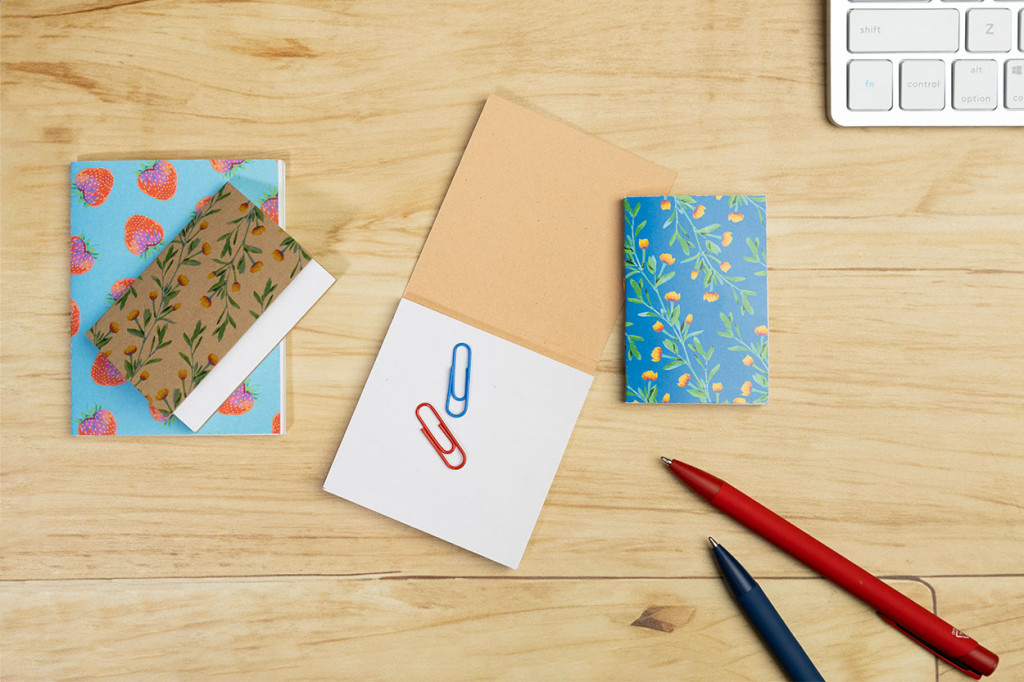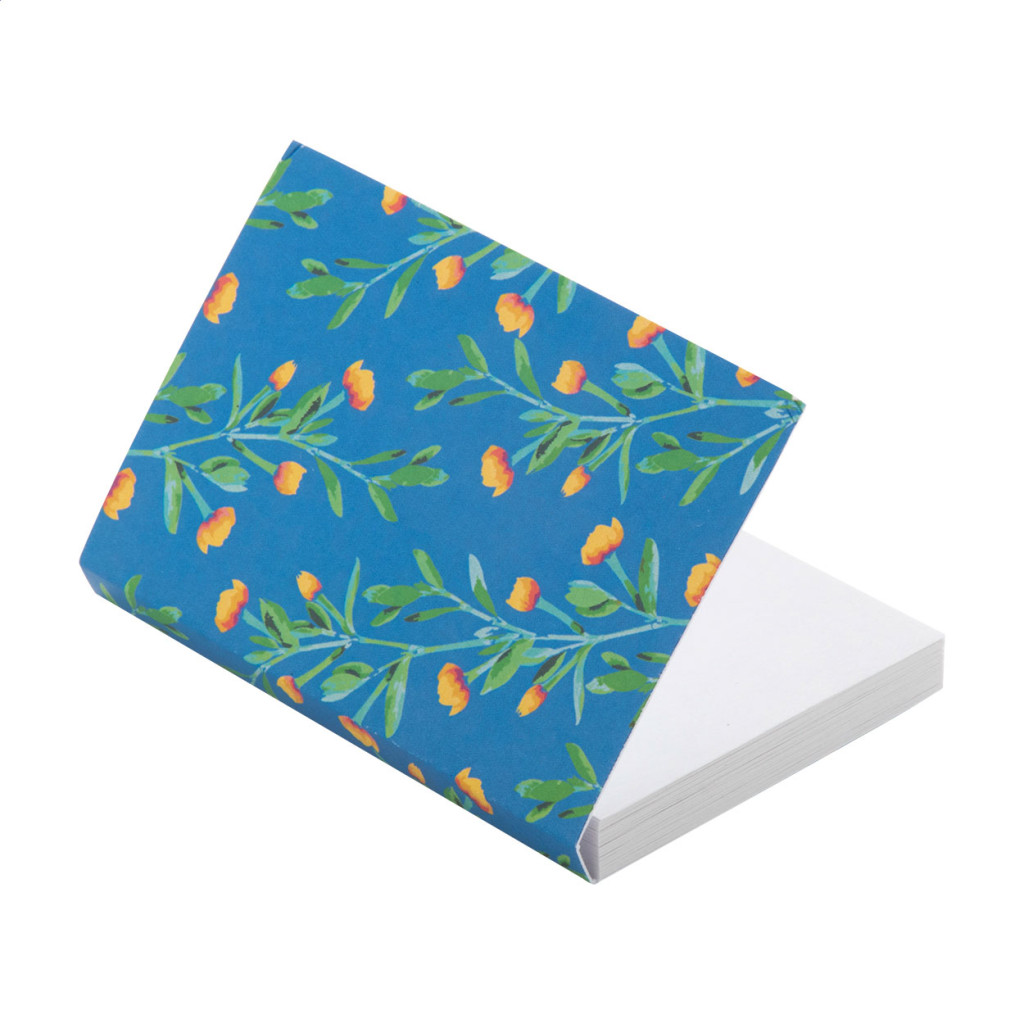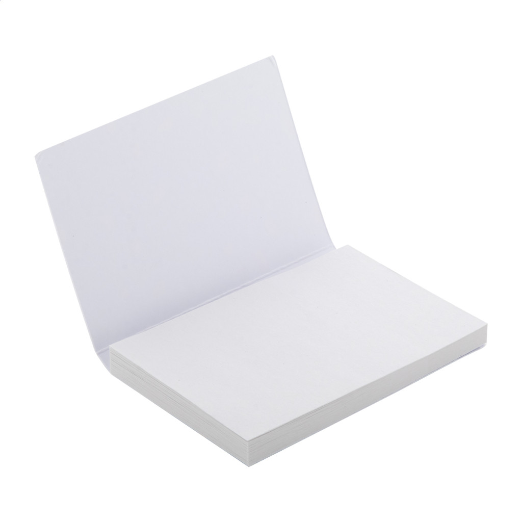 Egyediesíthető, papírral borított öntapadós jegyzettömb. Tartalmaz 50 újrahasznosított papír öntapadós jegyzetlapot (50×75 mm). Az ár tartalmazza a külső borító full-colour nyomtatását. Minimális rendelési mennyiség: 100 db. Külső borító