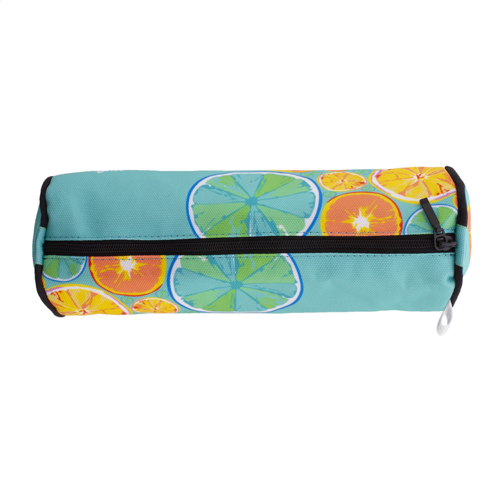 Egyediesíthető, kerek, 600 RPET poliészter tolltartó, cipzárral. Az ár tartalmazza a szublimációs emblémázás költségét a termék teljes felületén és az egyedi RPET címkét. Minimális rendelési mennyiség: 50 db. |