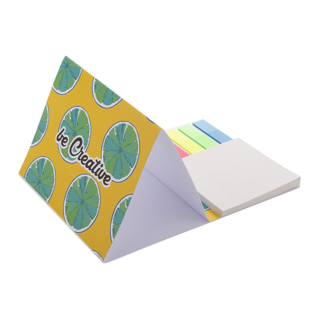 Egyediesíthető papír naptár öntapadós lapokkal. Tartalmaz 50 újrahasznosított papírból készült öntapadós lapot (75×75 mm) és 100 műanyag oldaljelölőt 5 különböző színben (44×12 mm). Az ár tartalmazza a full colour nyomtatást a külső borítón. Minimális rendelési mennyiség: 100 db. |