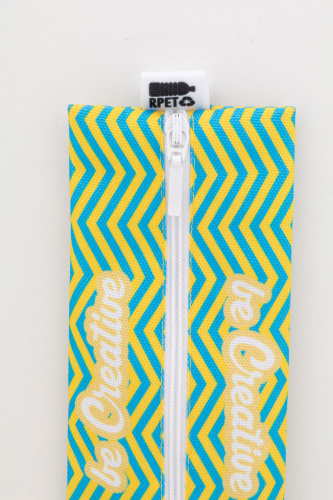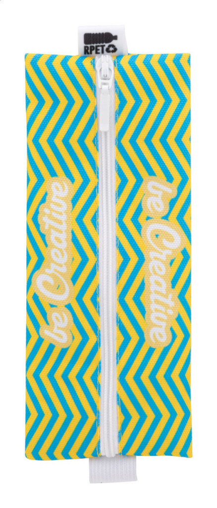 Egyedi gyártású, cipzáras tolltartó 600D RPET poliészterből, gumiszalaggal a jegyzetfüzet borítóra való rögzítéshez. Teljes felületén szublimációs nyomtatással ellátva és megkülönböztető RPET címkével. Minimális rendelési mennyiség: 50 db. |