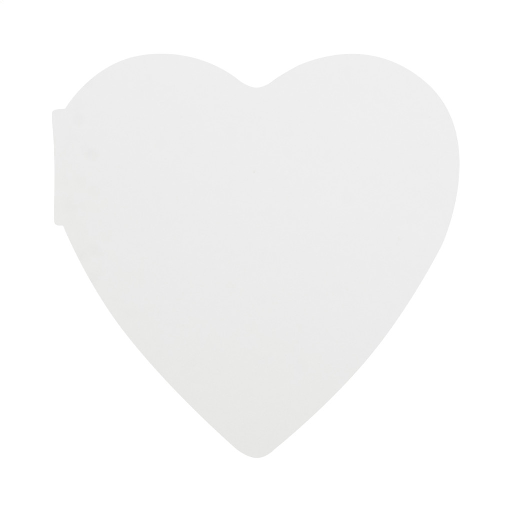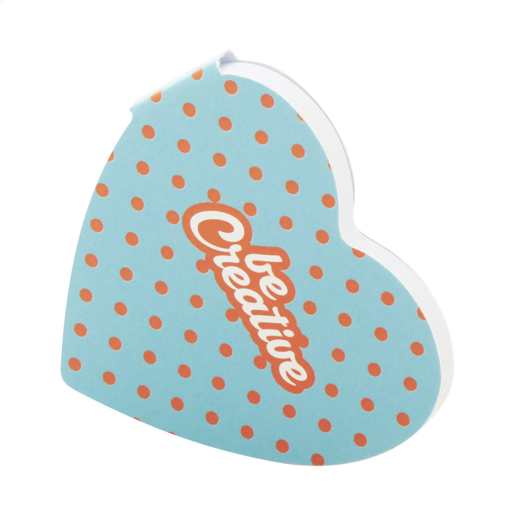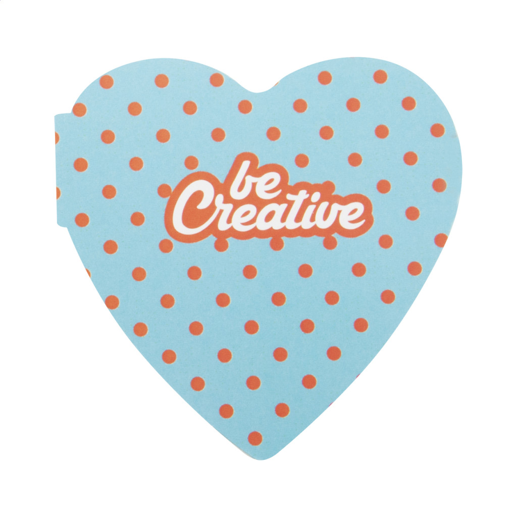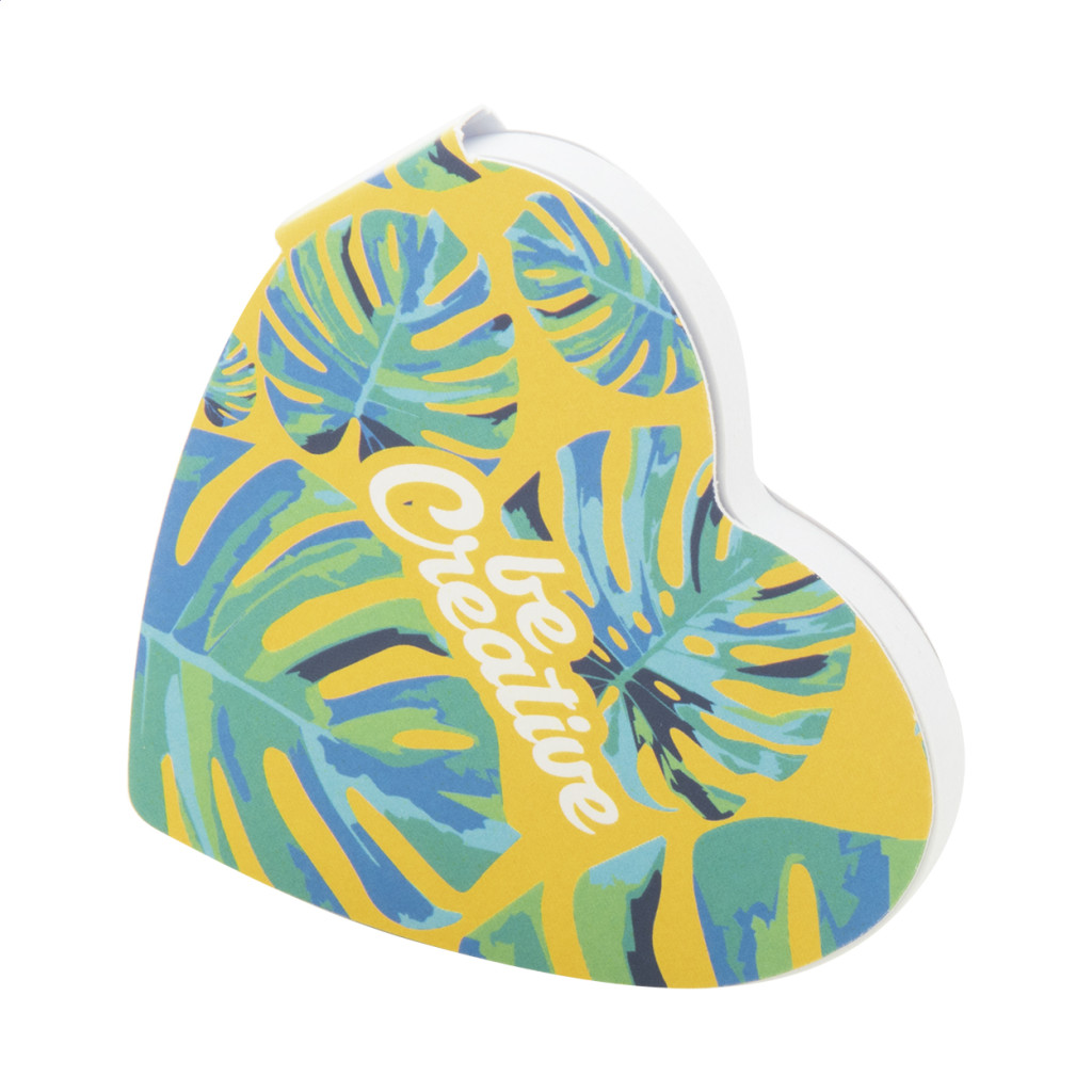 Egyediesíthető, papír borítású, szív alakú öntapadós jegyzettömb. 50 újrahasznosított papír öntapadós jegyzetlapot tartalmaz. Az ár tartalmazza a külső borító full-colour nyomtatását. Minimális rendelési mennyiség: 100 db. |