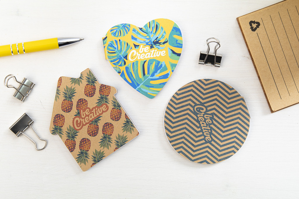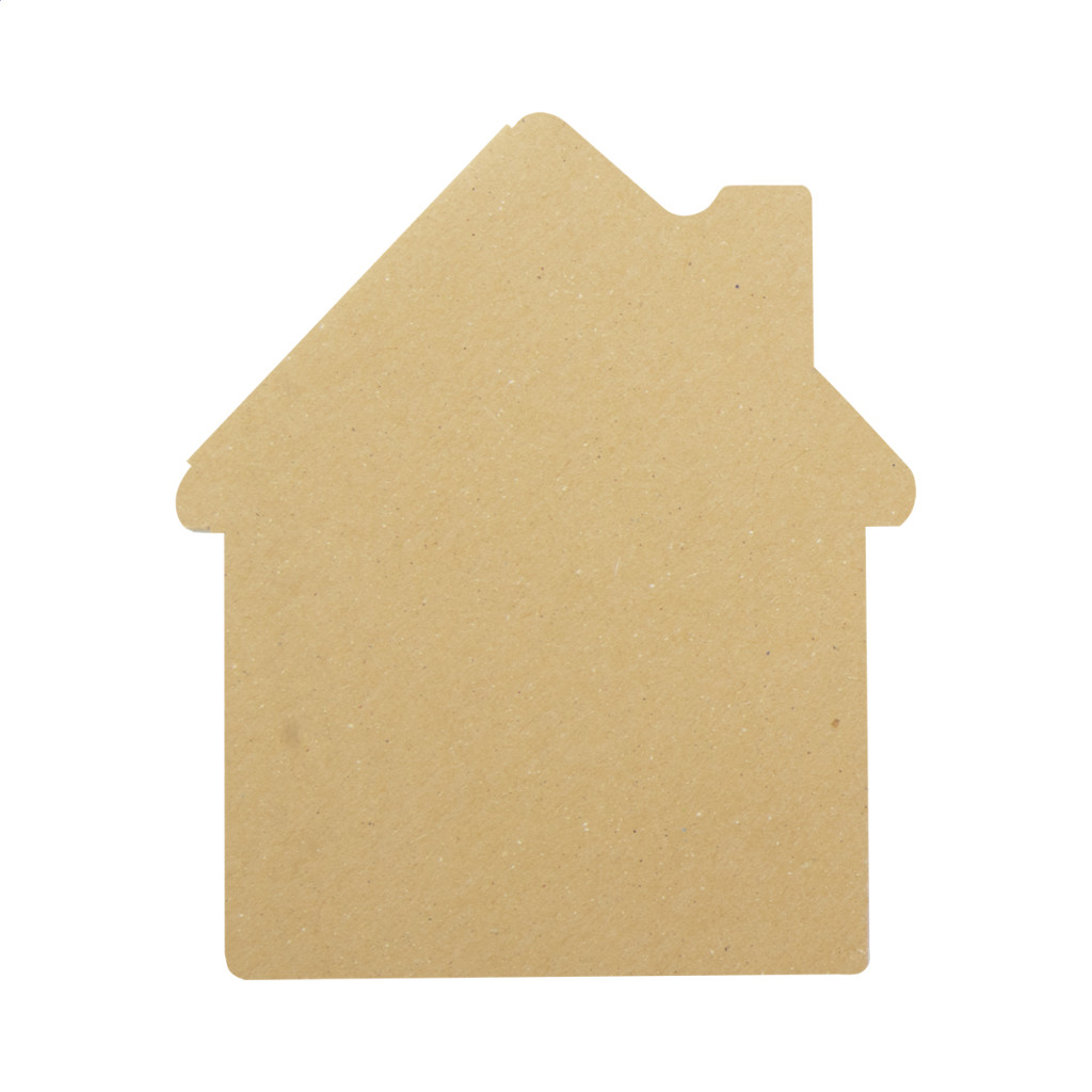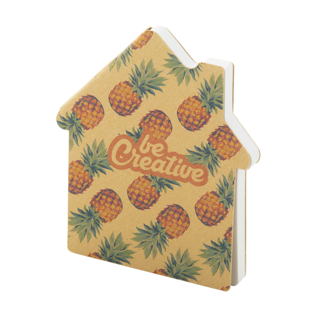 Egyediesíthető, újrahasznosított kraft papír borítású, ház alakú öntapadós jegyzettömb. 50 újrahasznosított papír öntapadós jegyzetlapot tartalmaz. Az ár tartalmazza a külső borító full-colour nyomtatását. Minimális rendelési mennyiség: 100 db. |