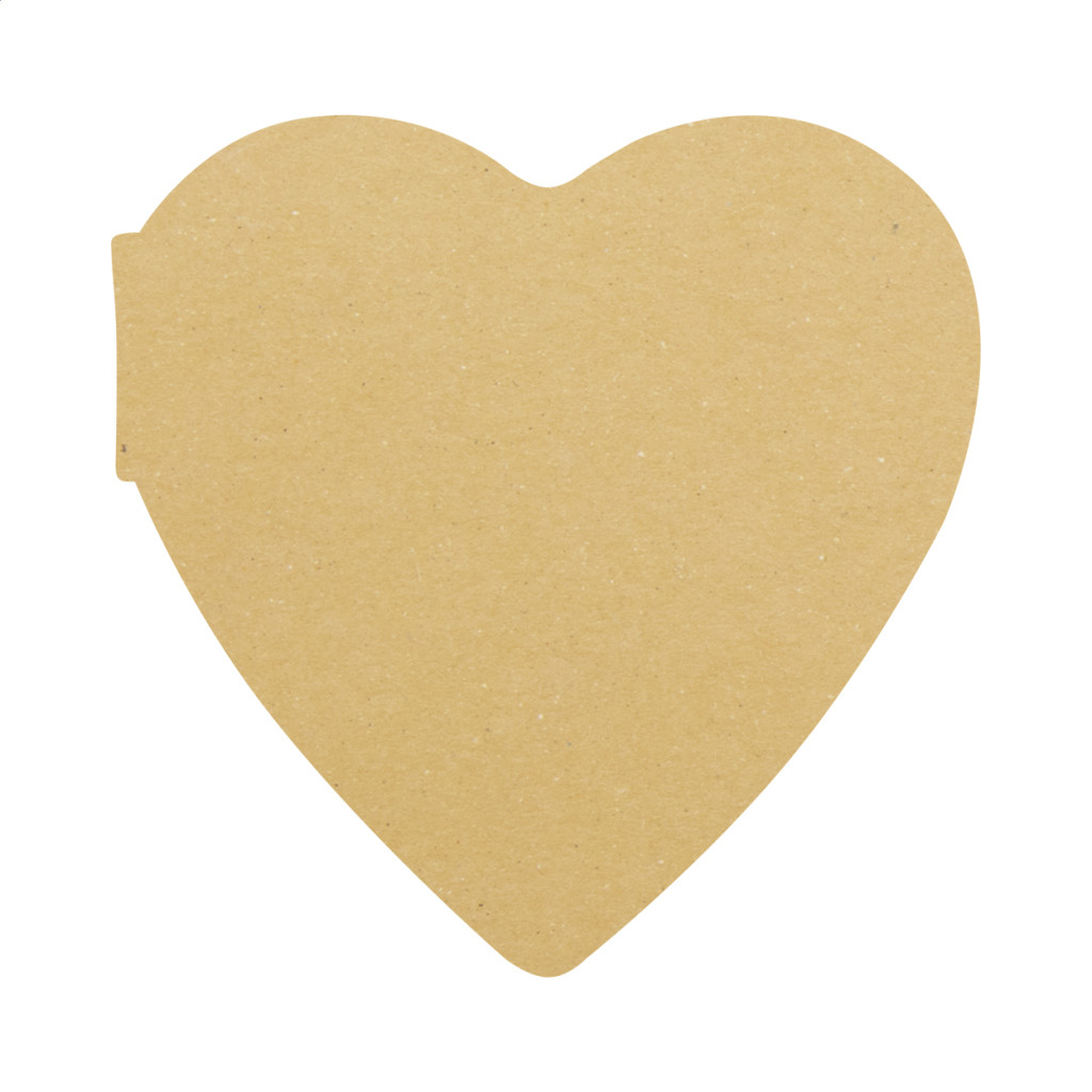 Egyediesíthető, újrahasznosított kraft papír borítású, szív alakú öntapadós jegyzettömb. 50 újrahasznosított papír öntapadós jegyzetlapot tartalmaz. Az ár tartalmazza a külső borító full-colour nyomtatását. Minimális rendelési mennyiség: 100 db. |