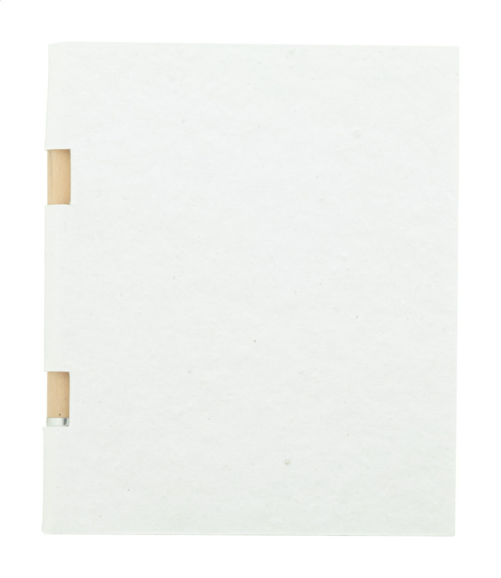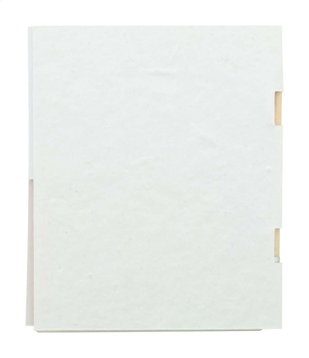 Egyediesíthető, magpapírral borított öntapadós jegyzettömb mini fa ceruzával. Újrahasznosított papírból készült öntapadós lapokkal 2 méretben (50 db 100×75 mm-es, 25 db 50×75 mm-es lap) és 100 műanyag oldaljelölővel 5 különböző színben (12×44 mm). Az ár tartalmazza a full colour nyomtatást a külső borítón. Minimális rendelési mennyiség: 100 db. Válogatott vadvirágmagokkal. |