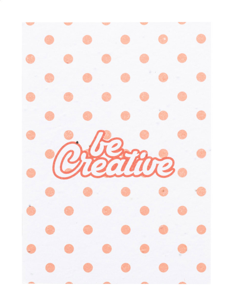 Egyedi gyártású, magpapírral borított jegyzetfüzet 32 újrahasznosított papírlappal, A6 méretű. Az ár tartalmazza a full-colour nyomtatott külső borítót. Minimális rendelési mennyiség: 100 db. Válogatott vadvirág magvakkal. Külső borító