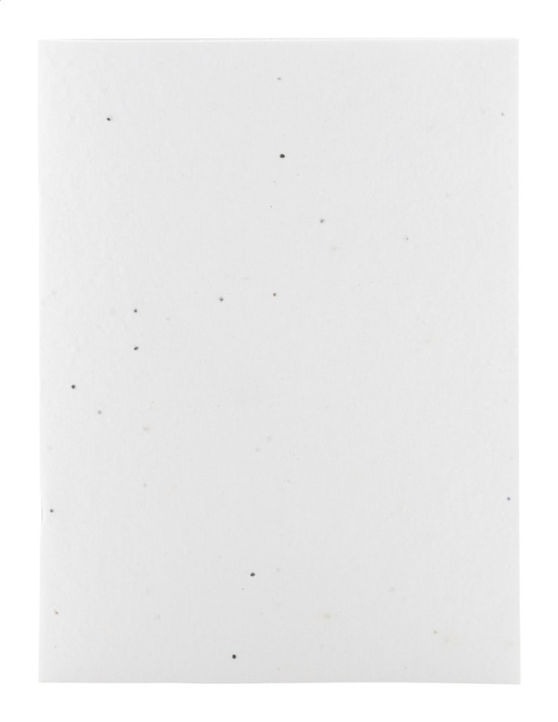 Egyedi gyártású, magpapírral borított jegyzetfüzet 32 újrahasznosított papírlappal, A5 méretű. Az ár tartalmazza a full-colour nyomtatott külső borítót és a belső oldalak azonos full-colour nyomtatását. Minimális rendelési mennyiség: 100 db. Válogatott vadvirág magvakkal. Külső borító