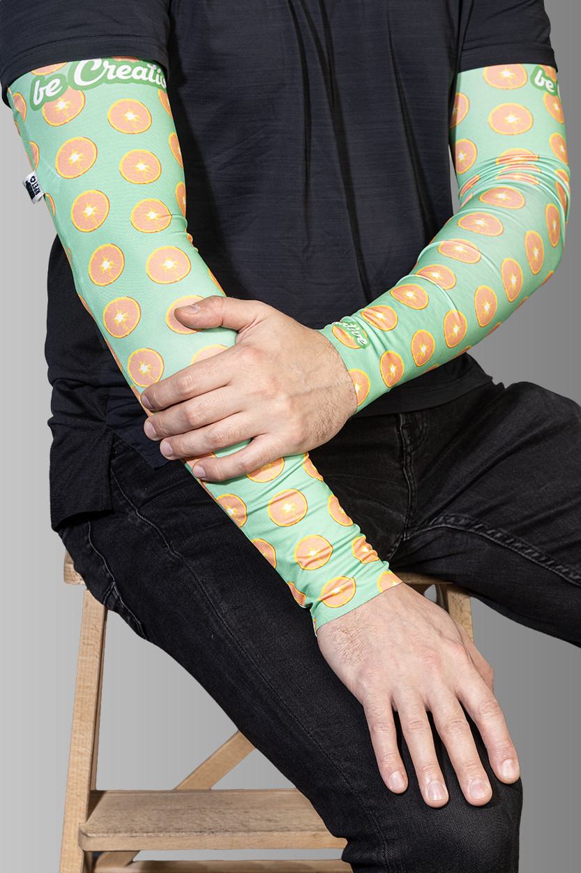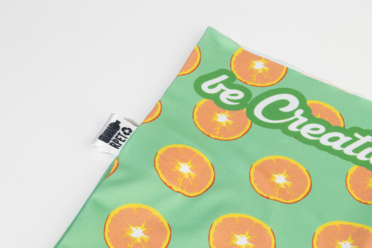 Egy pár egyedi gyártású, rugalmas RPET karvédő, teljes felületén szublimációs nyomtatott grafikával. 92% RPET poliészter és 8% elasztán (185 g/m²), megkülönböztető RPET címkével. Minimális rendelési mennyiség: 50 db. Méretek: M (8×12×48 cm), L (9,5×13,5×52 cm). |