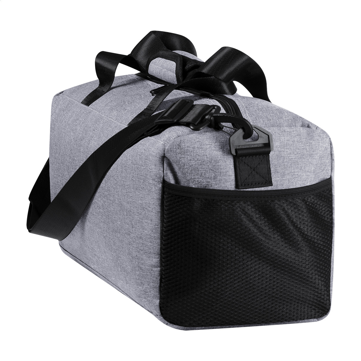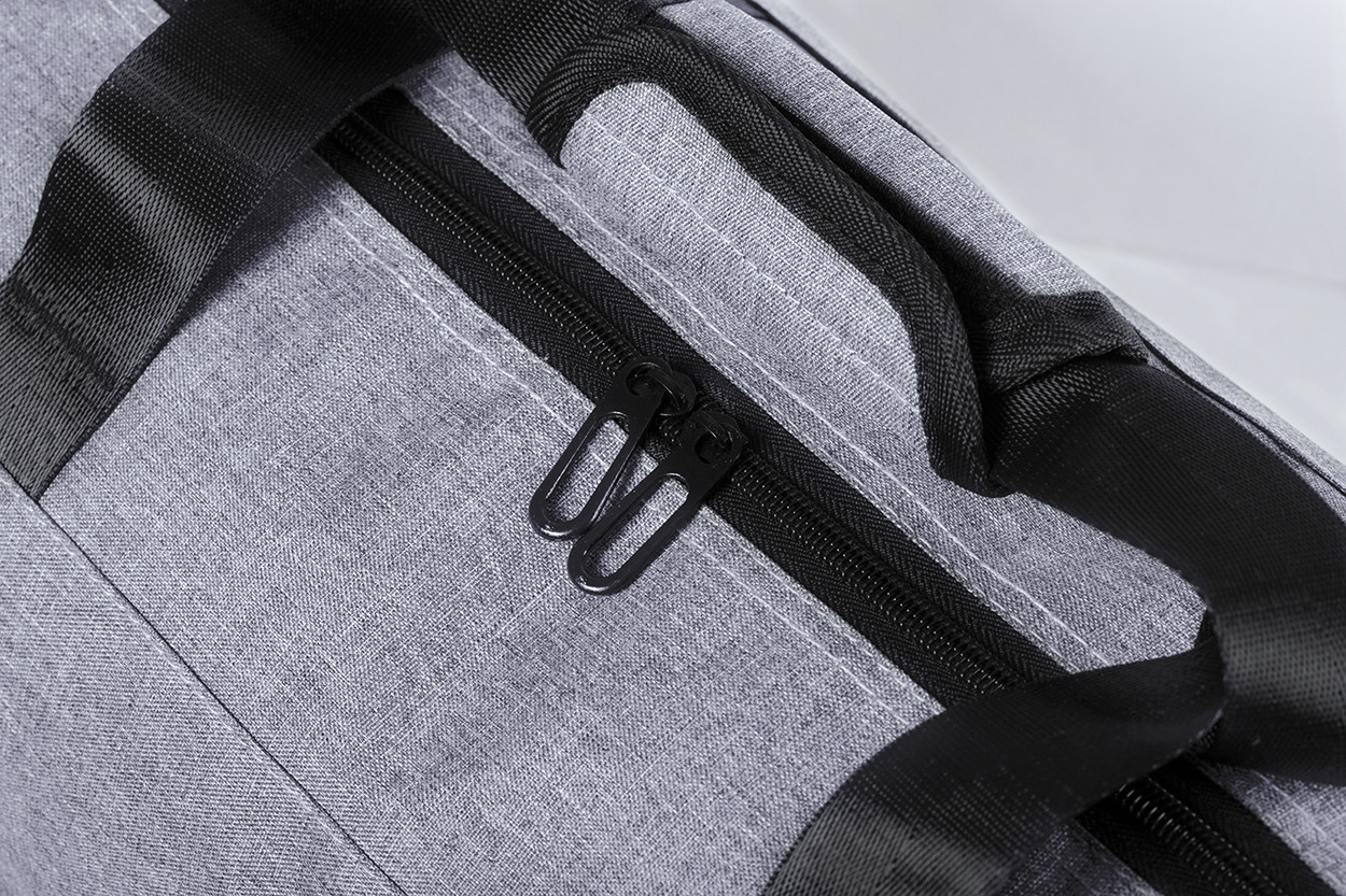 Sporttáska cipzáras rekesszel, oldalzsebekkel és állítható vállpántokkal, 600D poliészter. Eleje