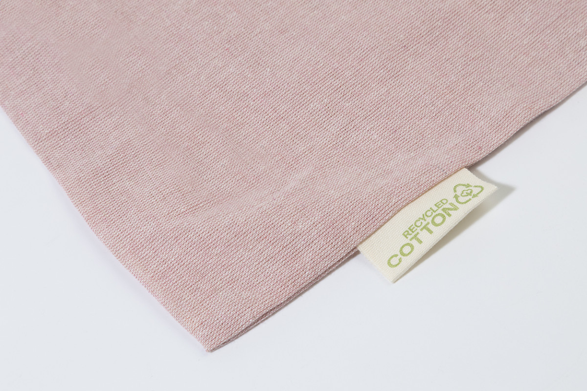 Többször használható, újrahasznosított pamut bevásárlótáska hosszú fülekkel. 100% újrahasznosított pamut, 120 g/m². Eleje