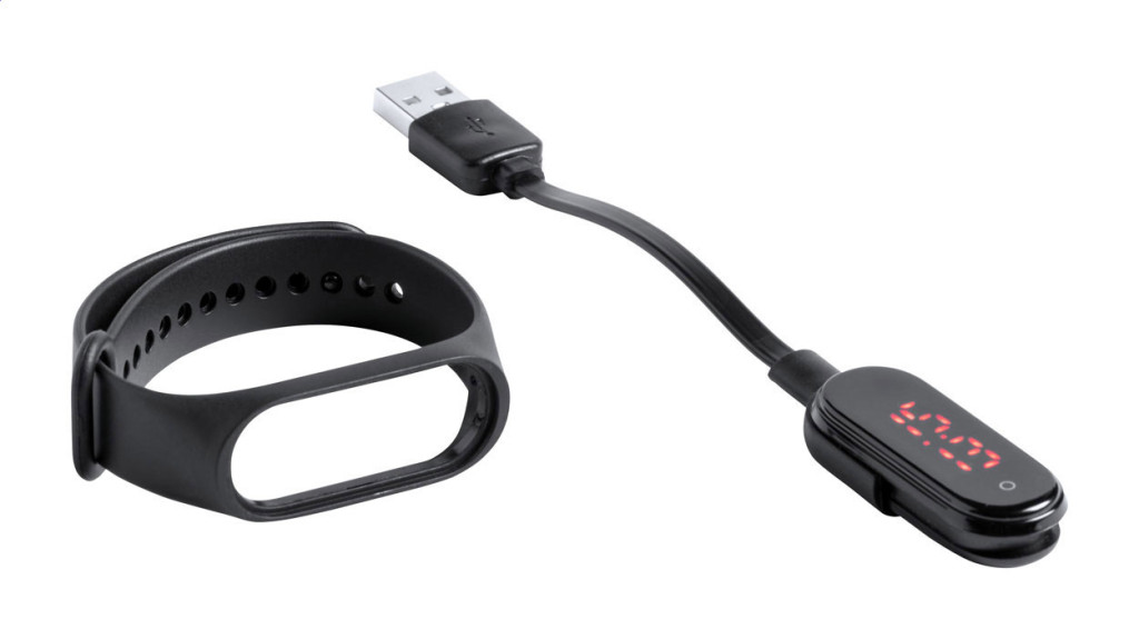 Hőmérő karpánt 0,96" LED kijelzővel és TPU szíjjal. USB töltőkábellel szállítjuk. Kijelző fölött