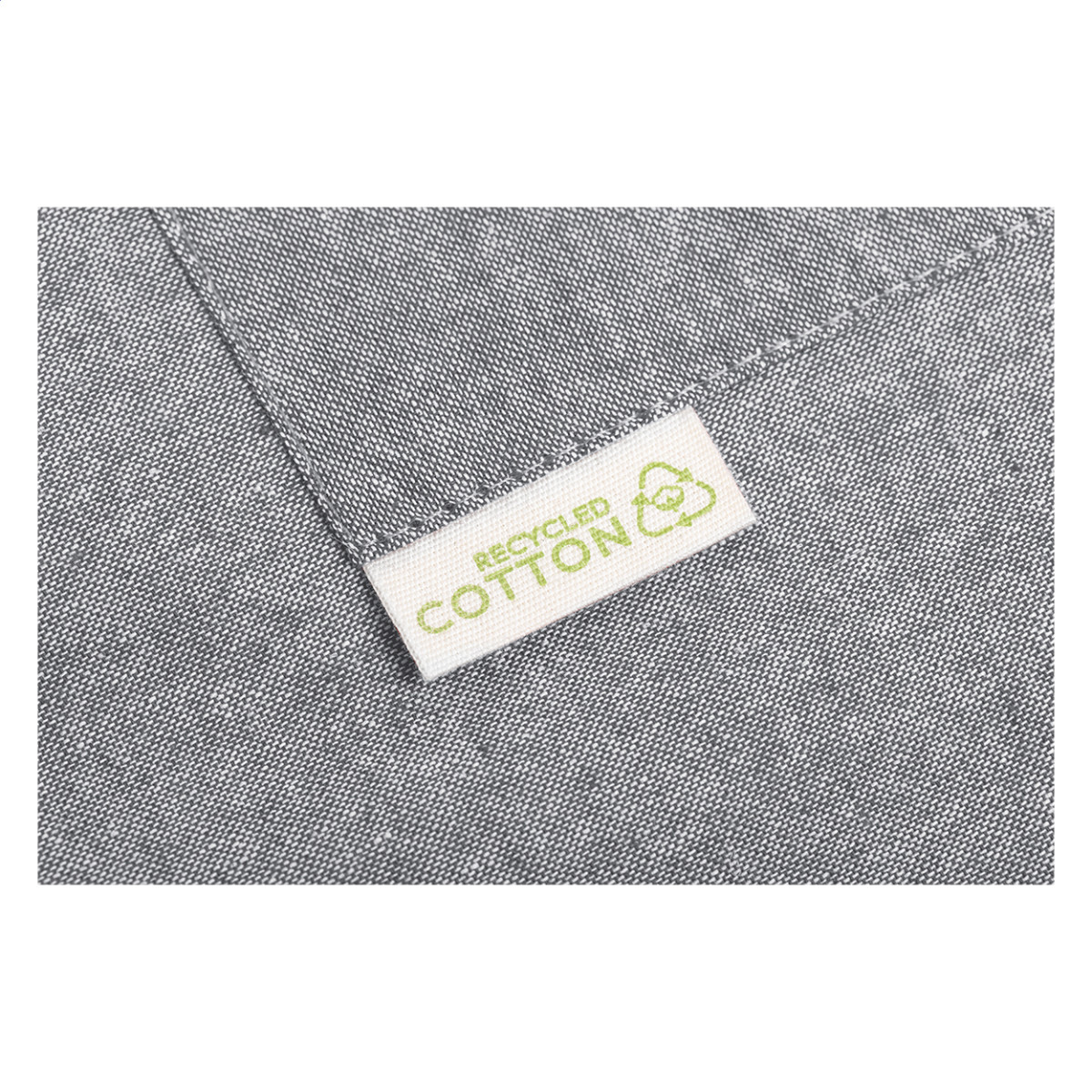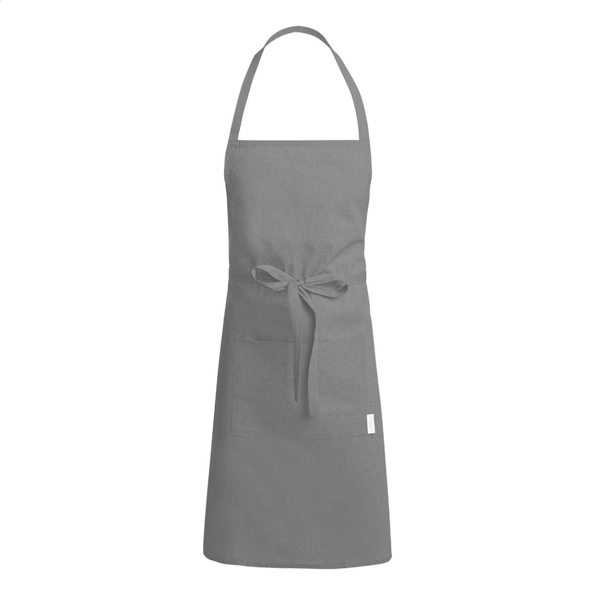 100% újrahasznosított pamutkötény elülső zsebbel, 140 g/m². Zseb fölött