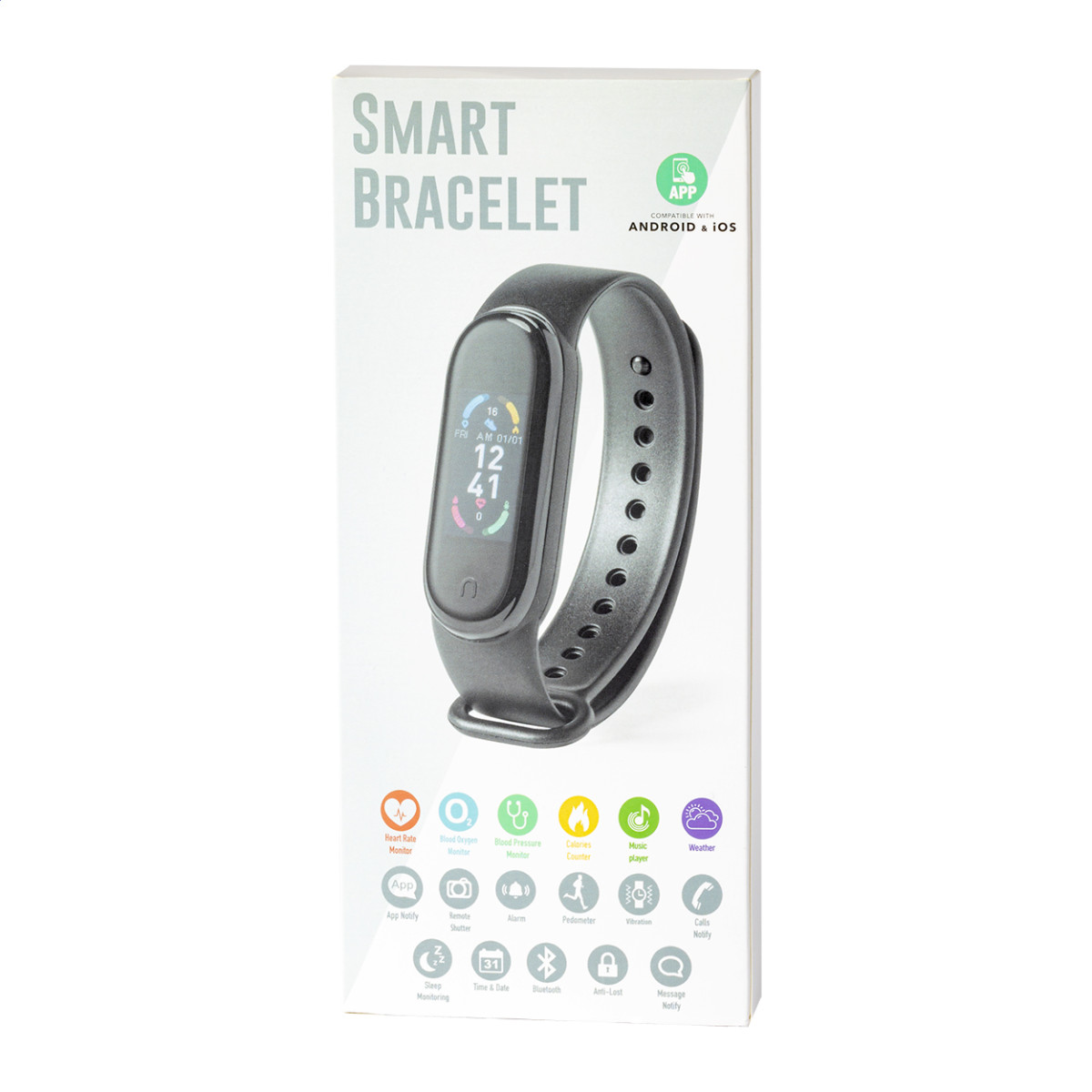 Többnyelvű, vezeték nélküli-os okosóra hőmérővel, véroxigén monitor funkcióval és pulzusmérővel, 0,96" TFT kijelzővel és TPU szíjjal. USB töltőkábellel szállítjuk. Doboz