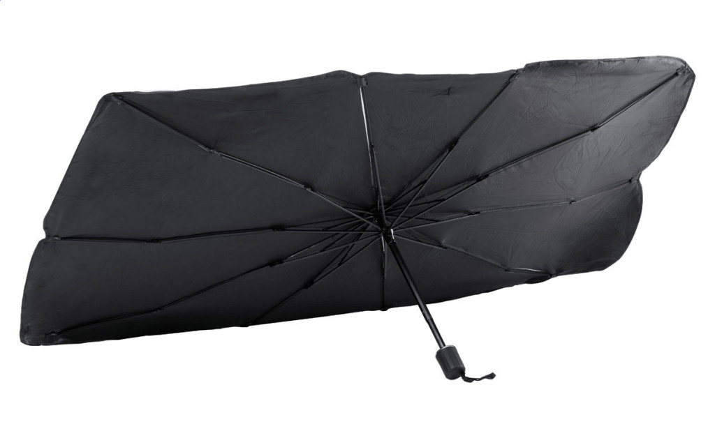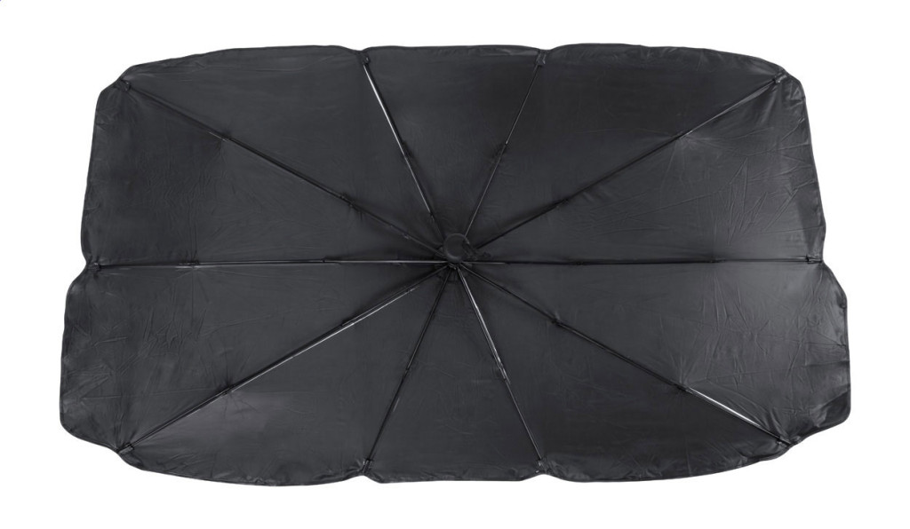 Kihajtható autós napellenző ernyő szélvédőre fém szegéllyel, poliészter tasakban.