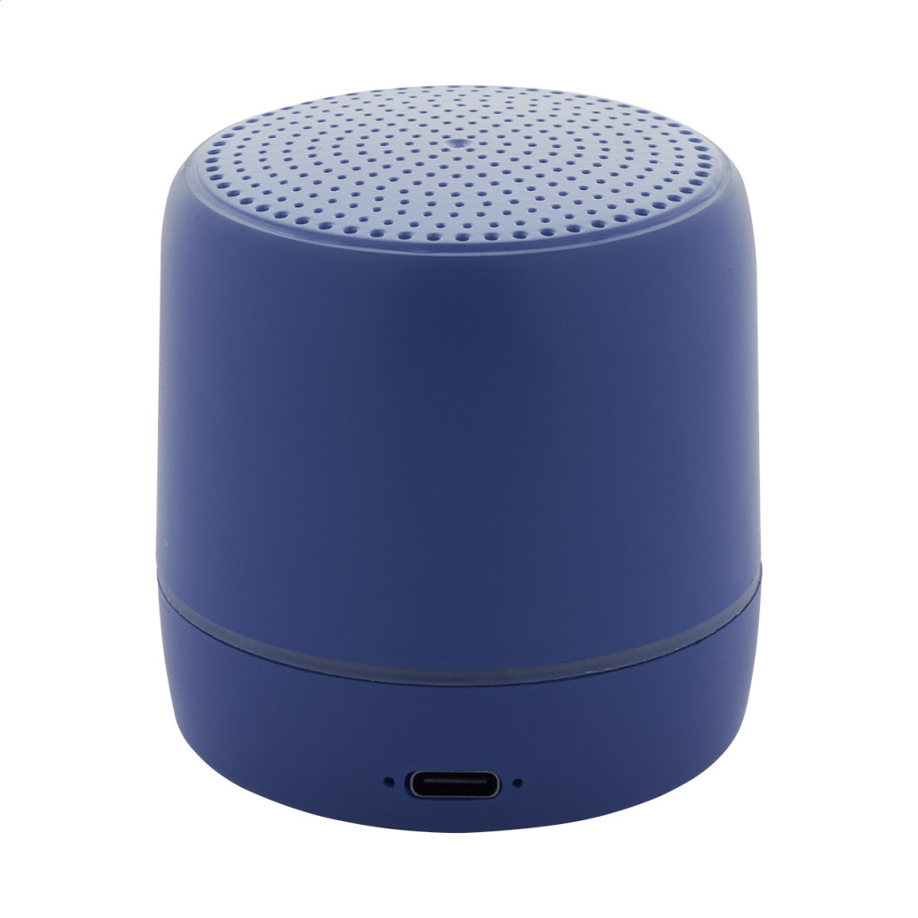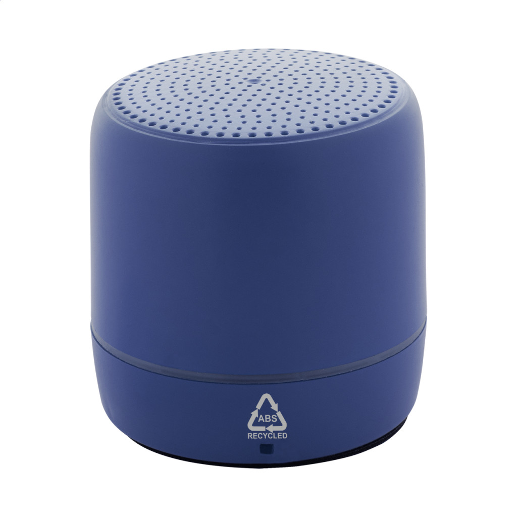 Újrahasznosított ABS vezeték nélküli hangszóró, kihangosító funkcióval és beépített akkumulátorral. USB töltőkábellel szállítjuk. Eleje