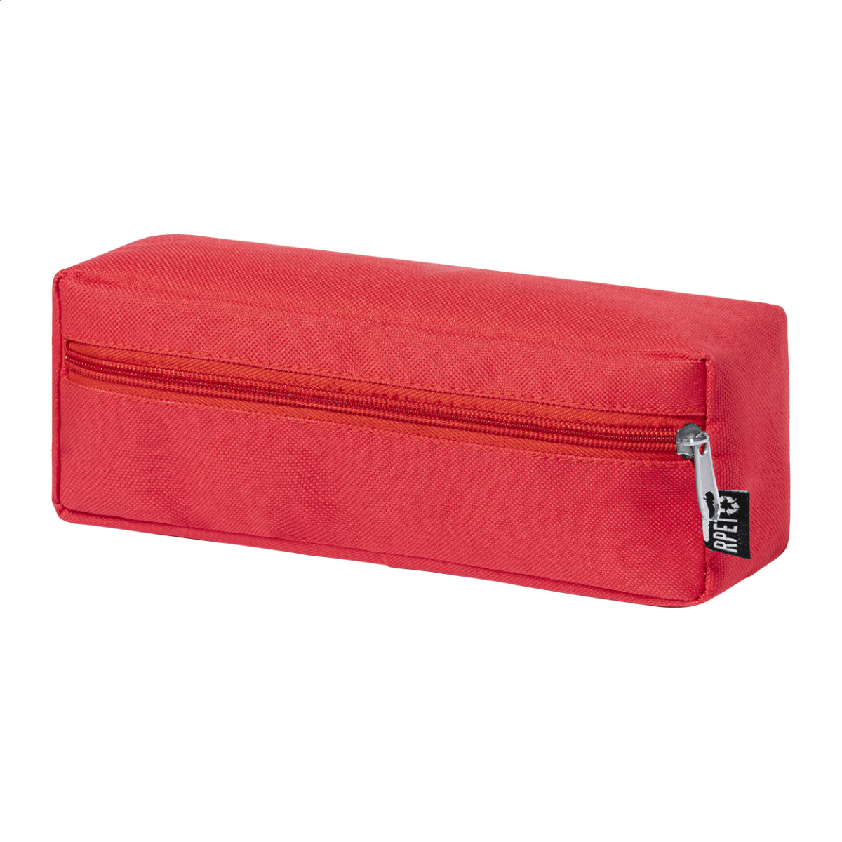 Cipzáros RPET poliészter anyagú tolltartó. 600D RPET poliészter, megkülönböztető RPET címkével. Eleje