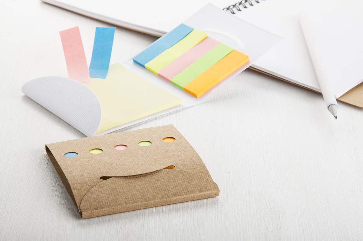 25 db nagy és 125 kisebb (5 különböző színű) öntapadós lapot tartalmazó jegyzettömb.