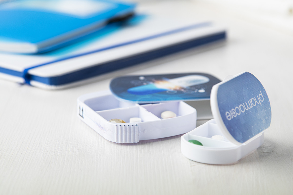 Három rekeszes, műanyag gyógyszeradagoló. Teteje