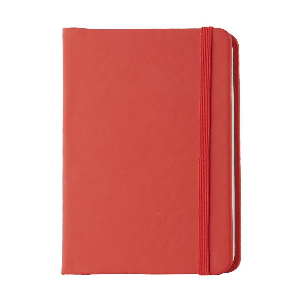 PU bőr borítású jegyzetfüzet 100 sima lappal, könyvjelzővel, gumipánttal zárható. A6 méretű. Eleje