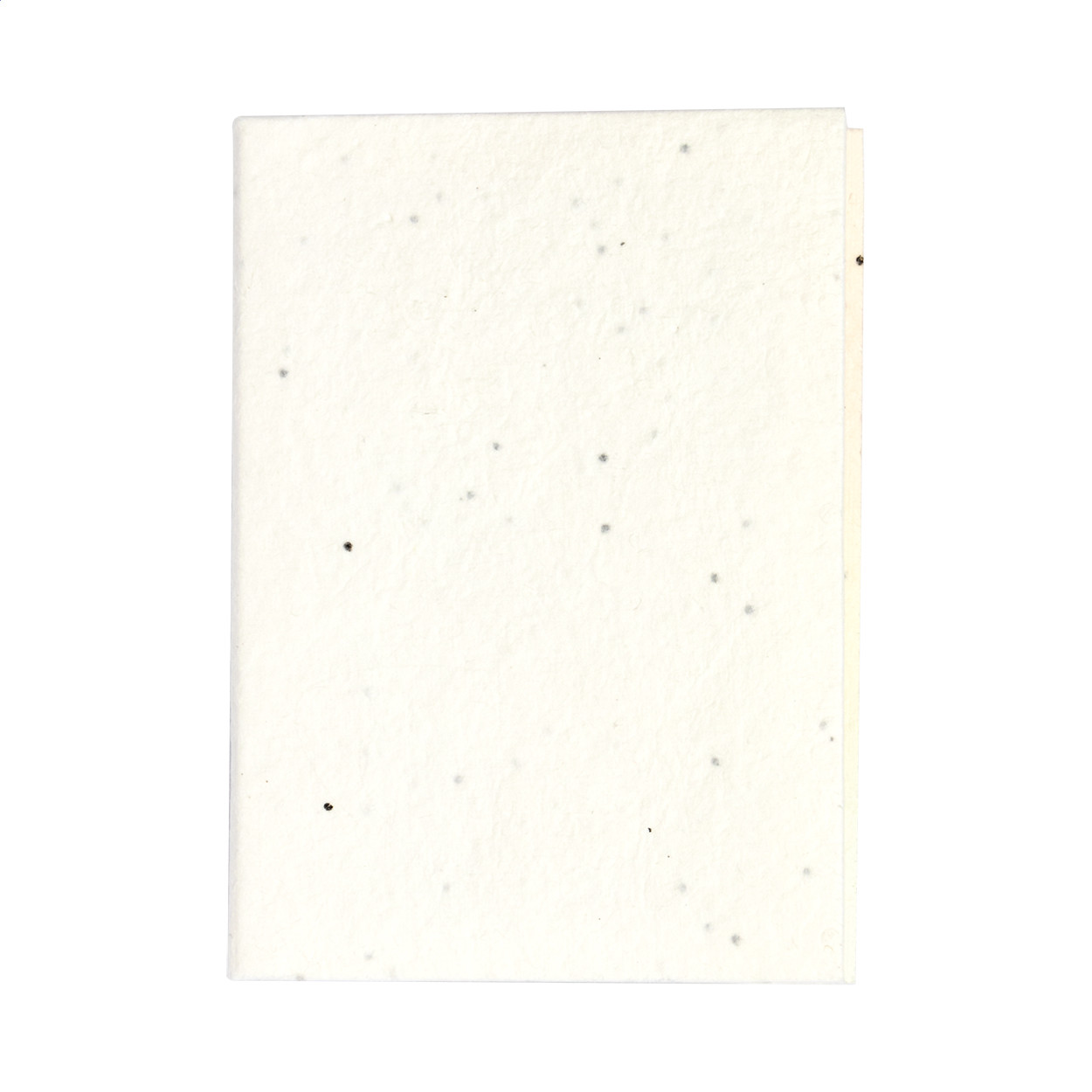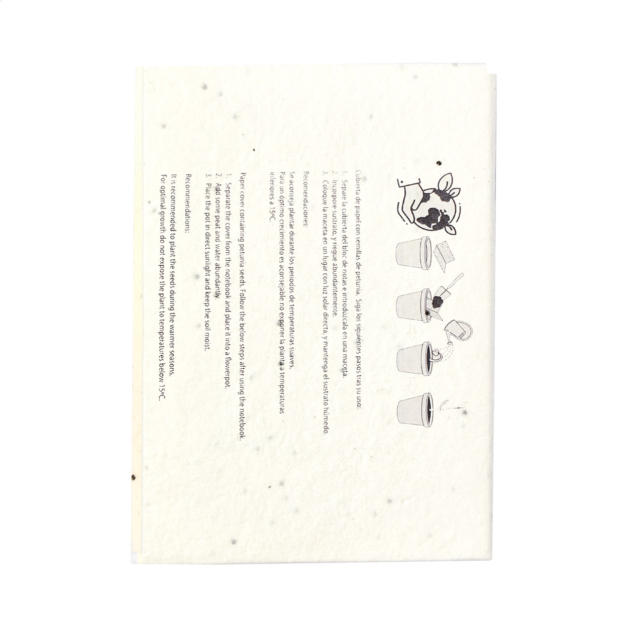 Öntapadós jegyzettömb magpapír borítóval, 25 jegyzetlappal és 125 oldaljelölővel (5 féle színben). A magpapír borító változatos színű petúniamagokat tartalmaz, melyeket a borító és a füzet szétválasztása után lehet elültetni. |
