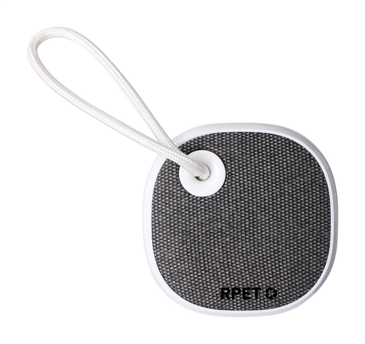 Újrahasznosított ABS műanyag vezeték nélküli hangszóró RPET poliészter oldallal, beépített napelemes töltővel, hordszíjjal és újratölthető akkumulátorral (300 mAh). USB töltőkábellel szállítjuk. Teteje