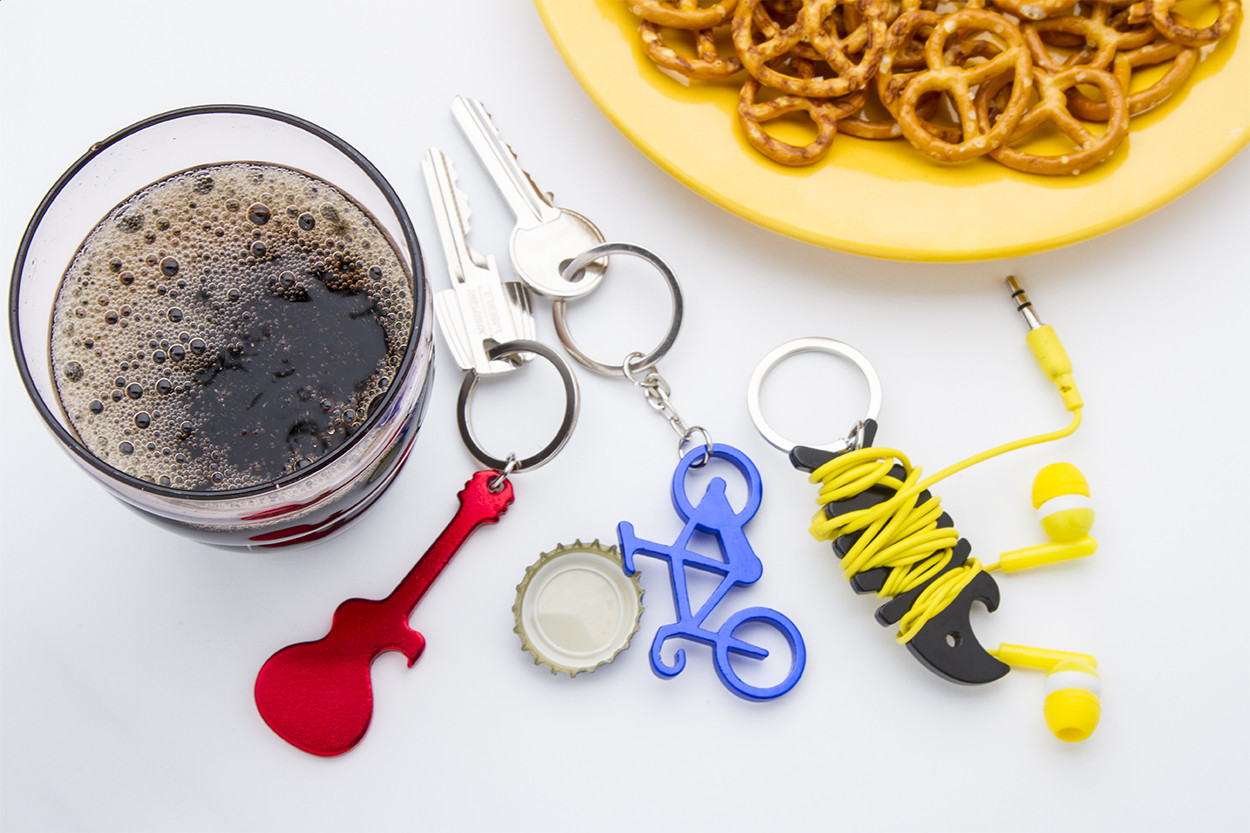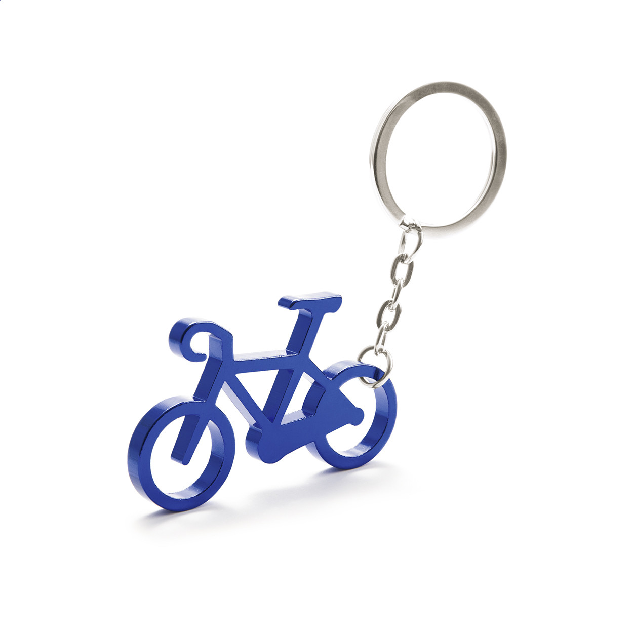 Bicikli formájú alumínium kulcstartó, sörnyitó funkcióval. Eleje