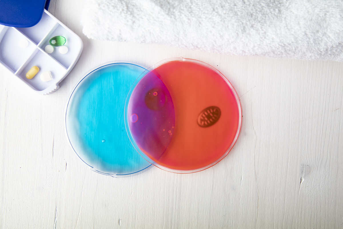 Átlátszó, újrahasználható melegítő tasak színes géllel.