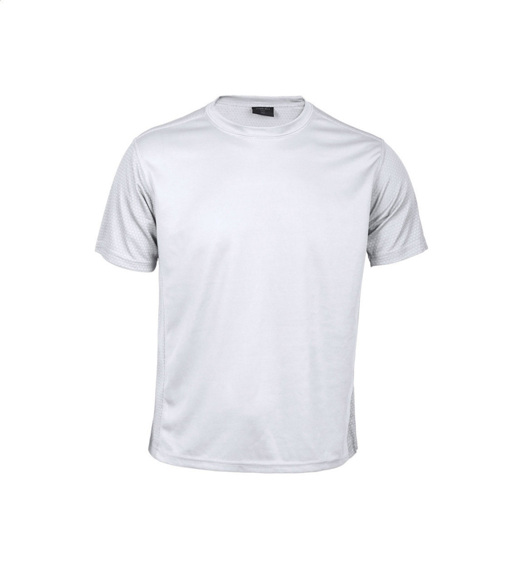 100% poliészter, légáteresztő sport póló hatszögletű szövésmintájú részletekkel, 135 g/m².