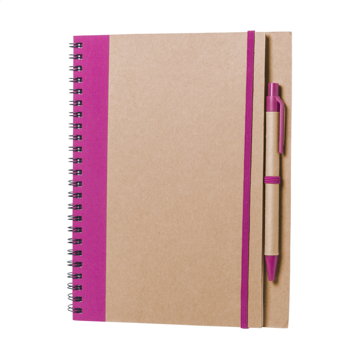 Újrahasznosított papírból készült spirálozott jegyzetfüzet 60 sima lappal, papír golyóstollal. Eleje