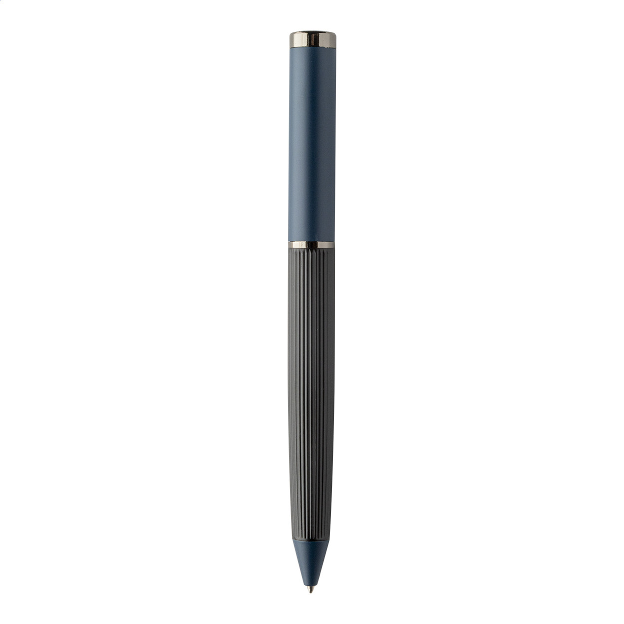 Elegáns, fém golyóstoll és rollertoll szett csíkos testtel, színes díszítőelemekkel és fényes fegyverfém részletekkel. Színben hozzáillő ajándékdobozban, kék tollbetéttel. André Philippe márkatermék. Golyóstoll klipsz alatt - jobbkezes