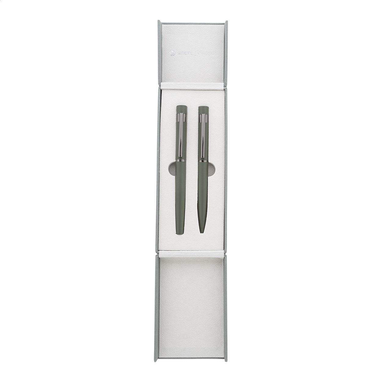 Elegáns, fém golyóstoll és rollertoll szett fényes fegyverfém részletekkel. Színben hozzáillő ajándékdobozban, kék tollbetéttel. André Philippe márkatermék. Golyóstoll klipsz alatt - jobbkezes
