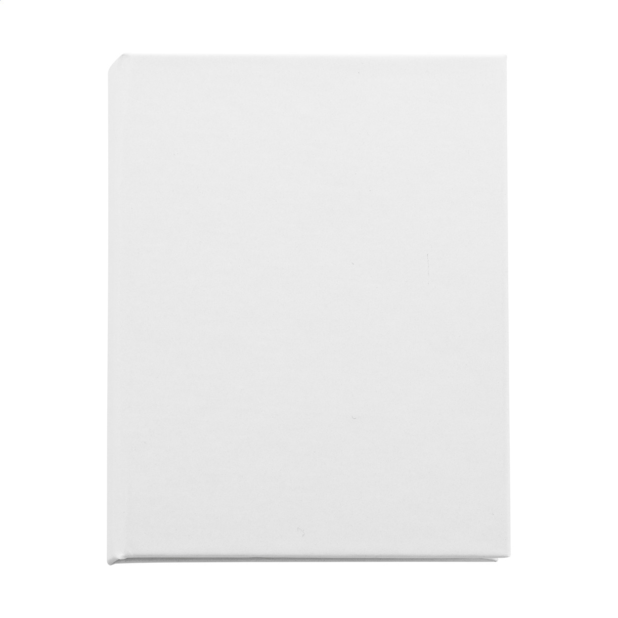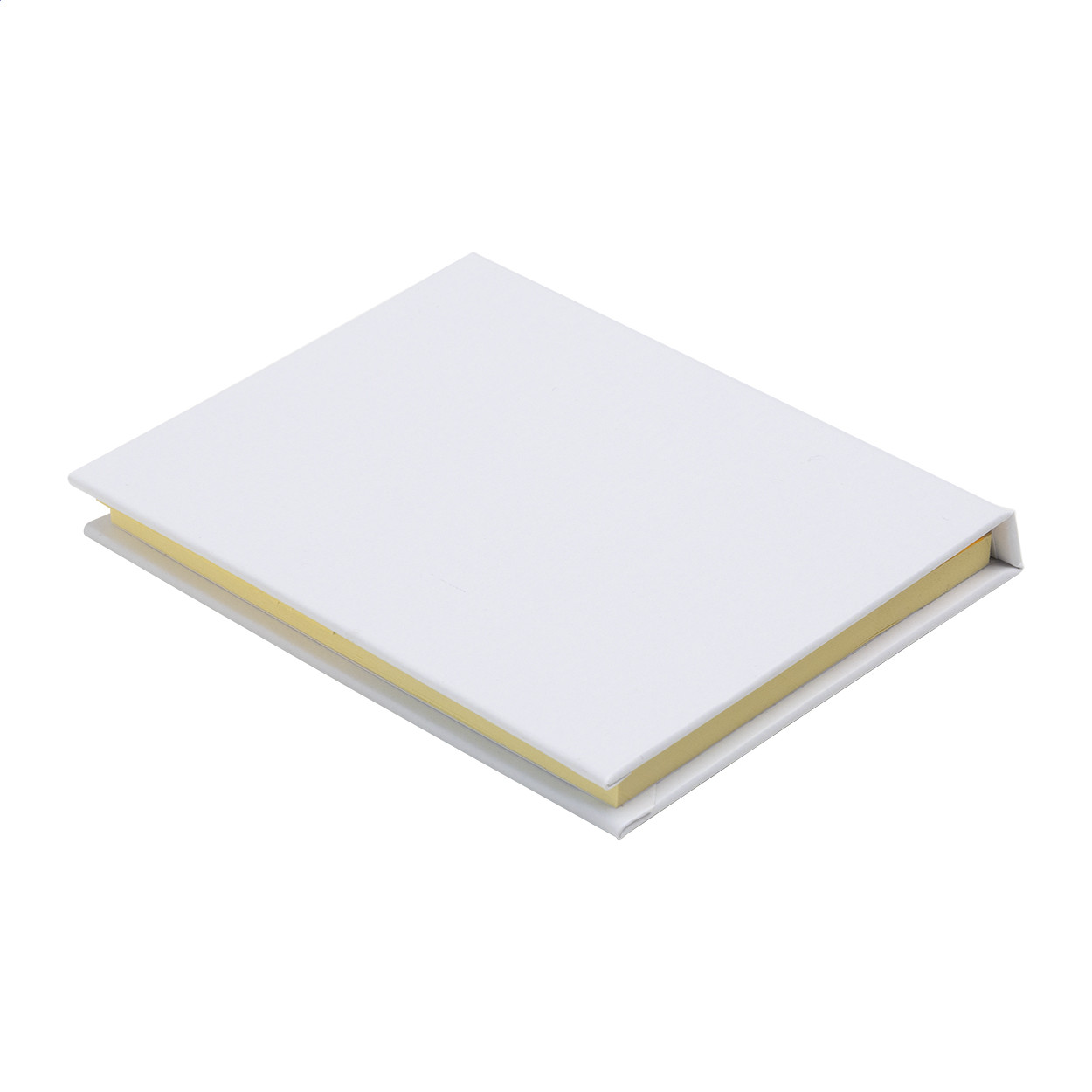 Újrahasznosított papírból készült öntapadós jegyzettömb 50 nagy és 25 közepes sárga jegyzetlappal, 125 oldaljelölővel (5 színben).