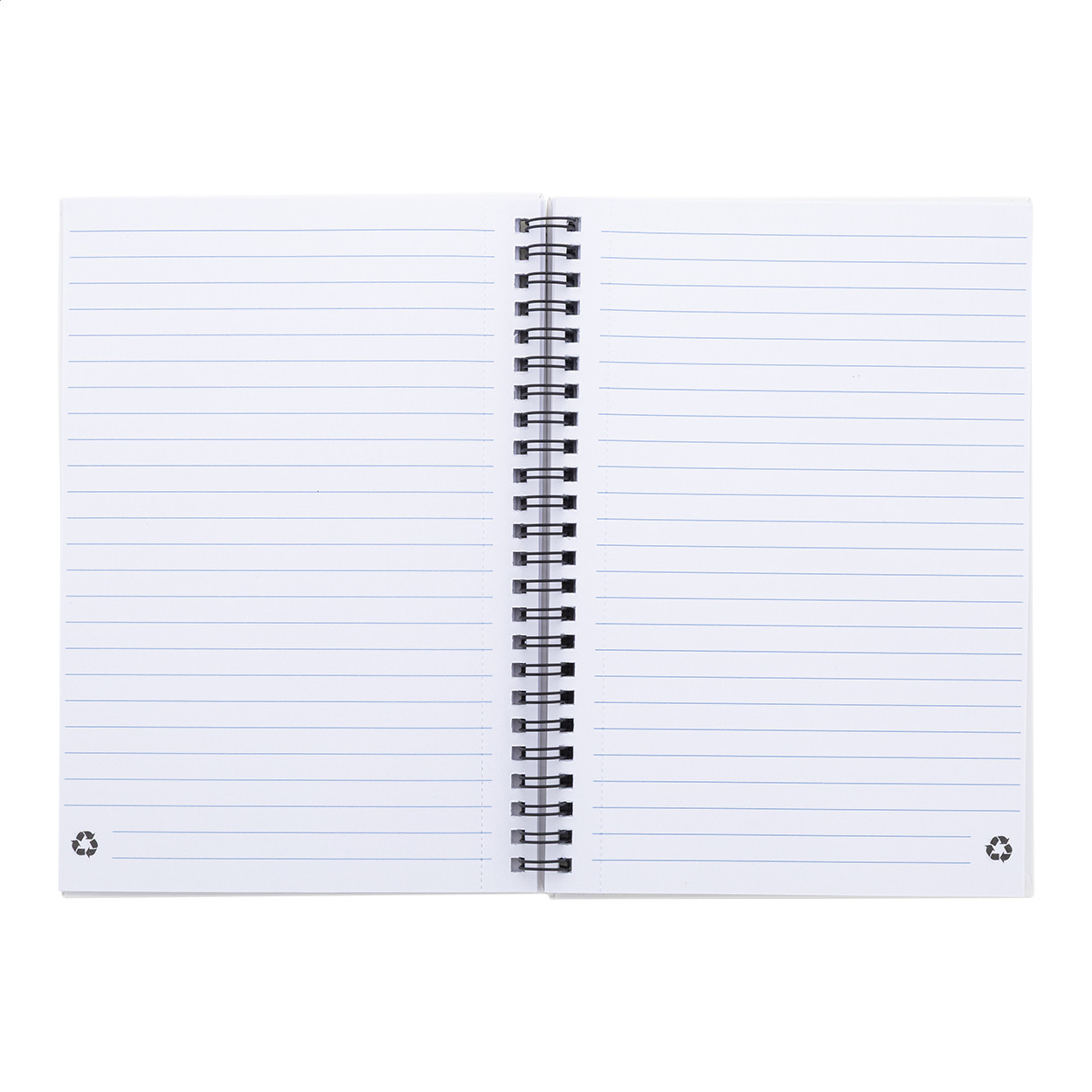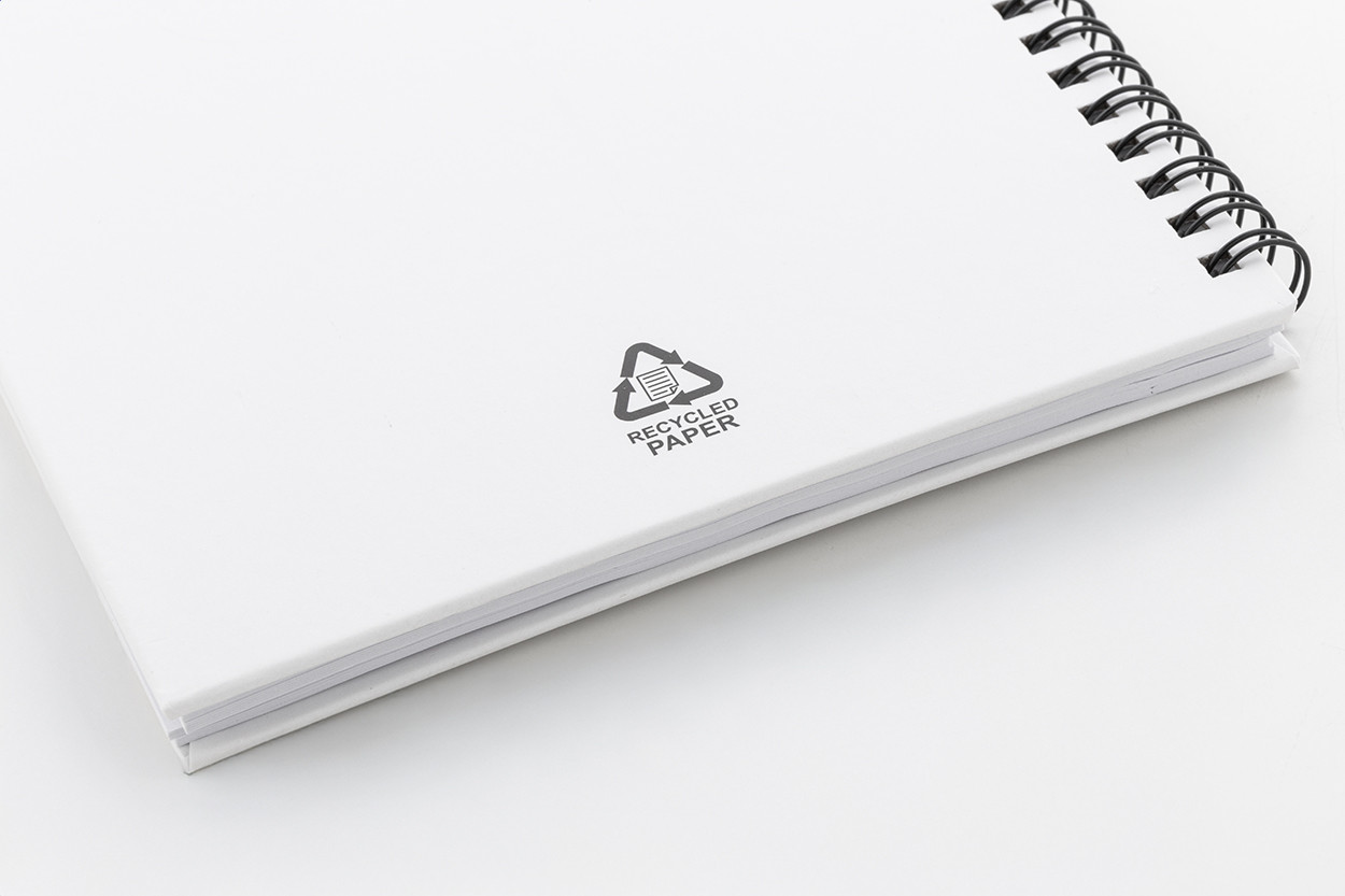 Újrahasznosított papír borítású spirál jegyzetfüzet 80 vonalas lappal, A5 méretű. Eleje